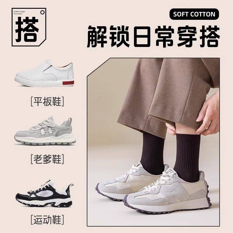 棉伙棉伴纯棉中筒袜抗起球男女纯色透气舒适耐穿日常百搭