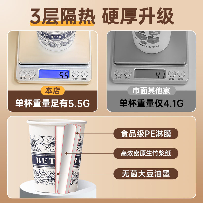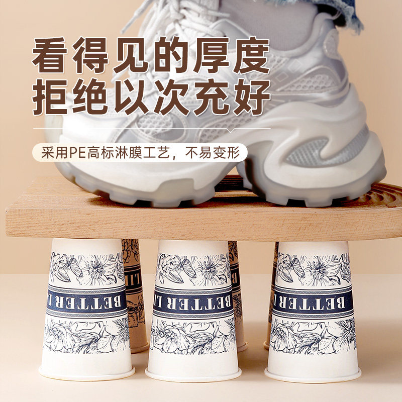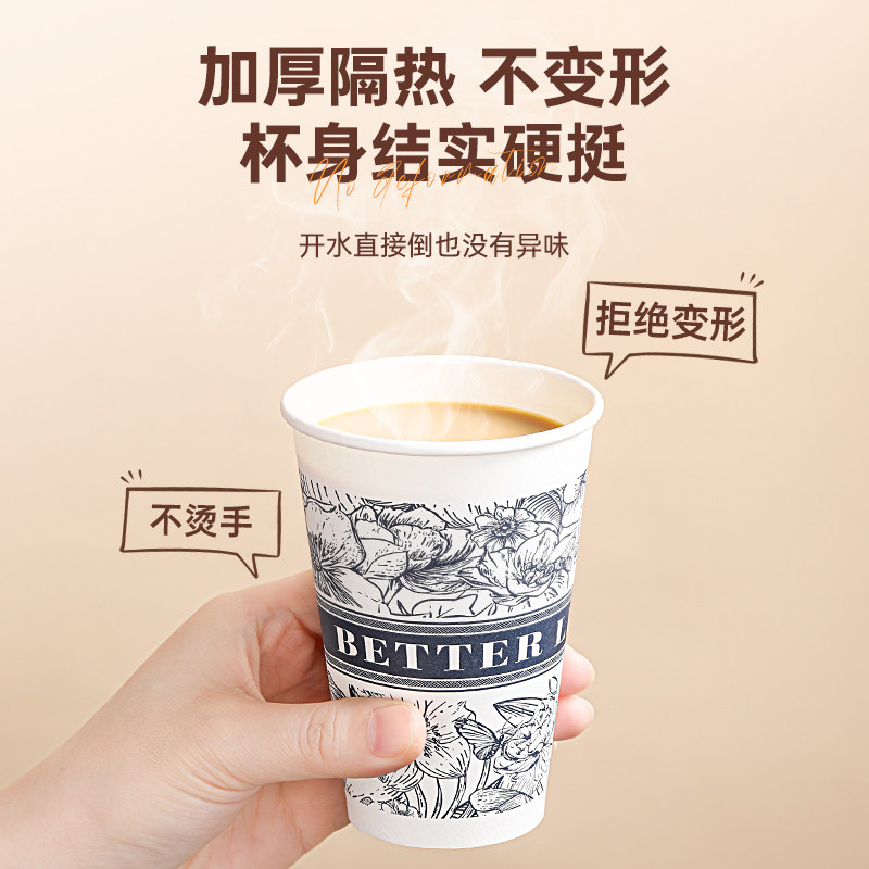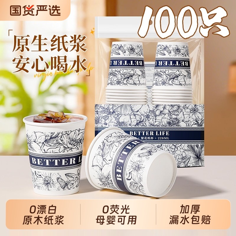 100只一次性纸杯加厚家用商用热饮茶水杯子奶茶杯加硬特厚品尝杯