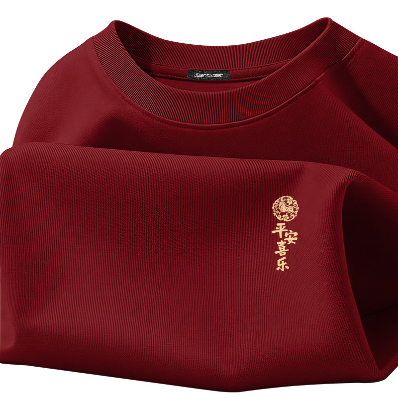 NN真维斯红色t恤男重磅纯棉2026马年新年体恤衫青少年本命年衣服