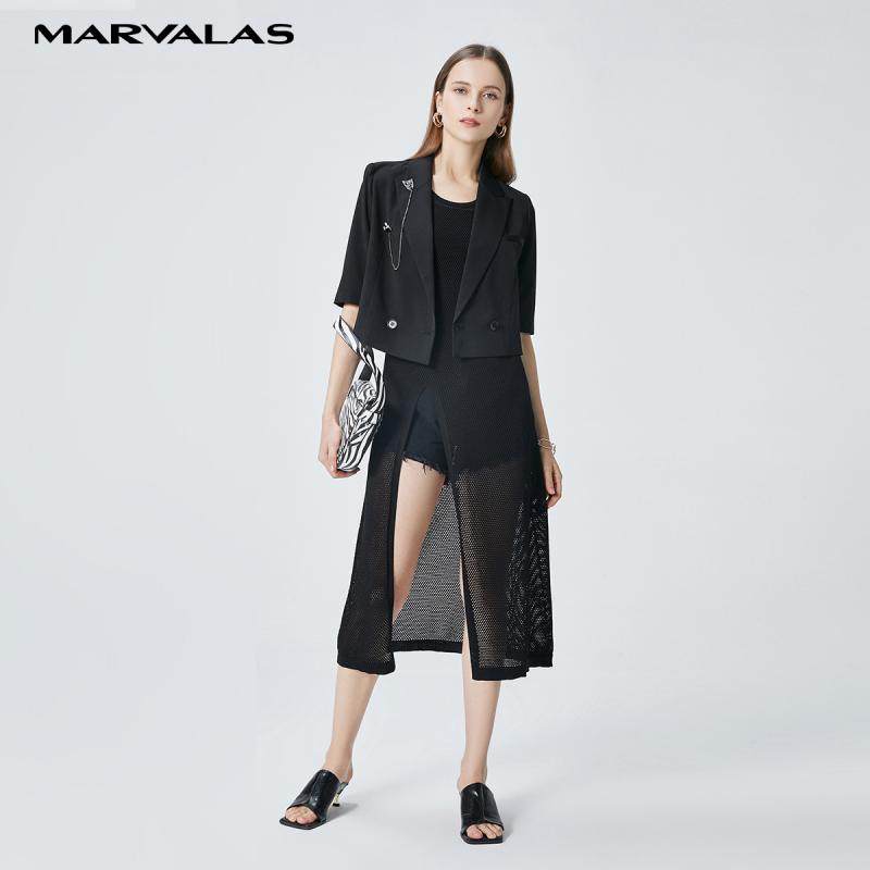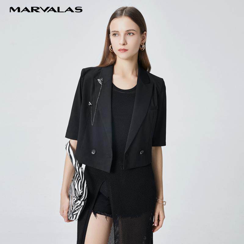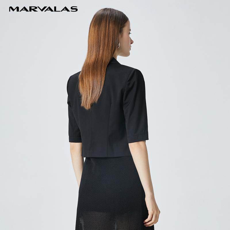 曼德诗黑色小西装外套女款短款2025夏装新款修身短袖气质休闲西服