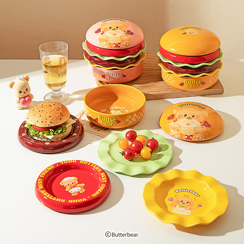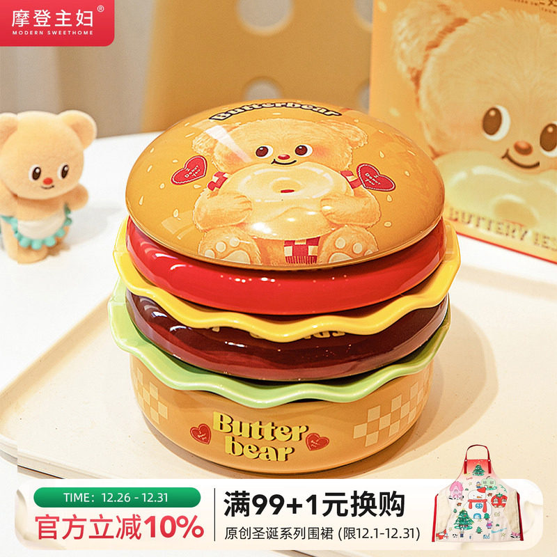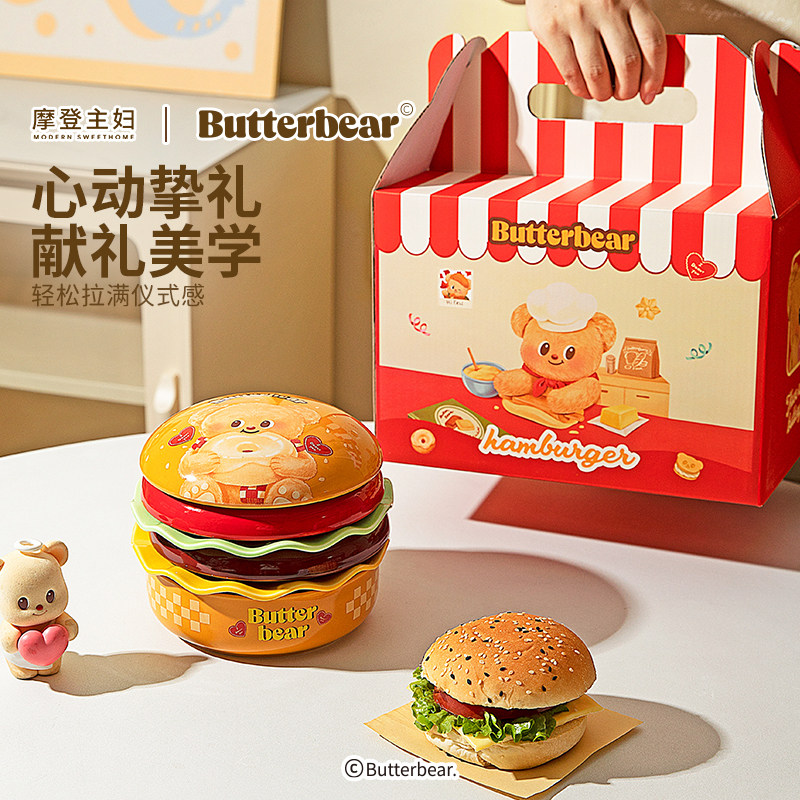 【摩登主妇&黄油小熊】汉堡包餐具套装碗碟家用盘子餐盘生日礼物