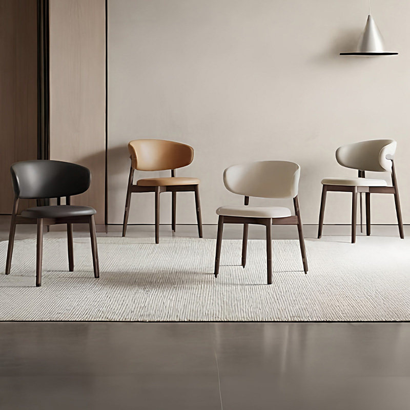 轻奢侘寂风餐椅皮软包设计师现代弯曲木咖啡厅实木椅子家用书房椅