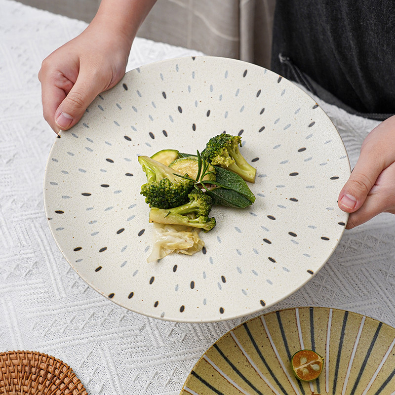 家用高级感陶瓷盘子日式瑞和手绘线条餐具套装深口菜盘精致碗碟子