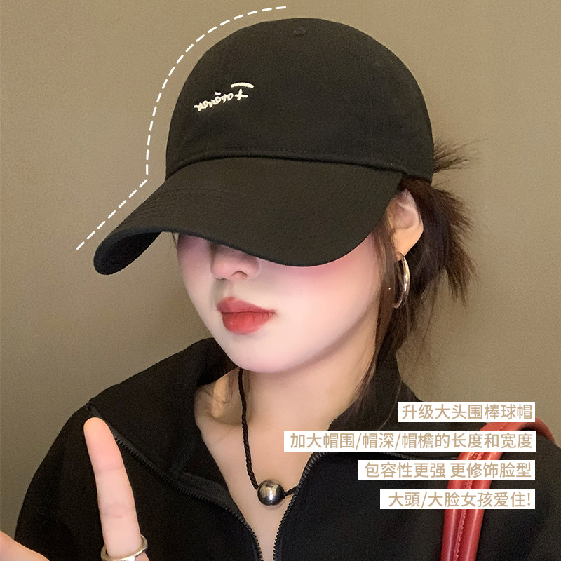 美式复古字母灰色棒球帽女高级感宽檐大头围显脸小百搭鸭舌帽子男