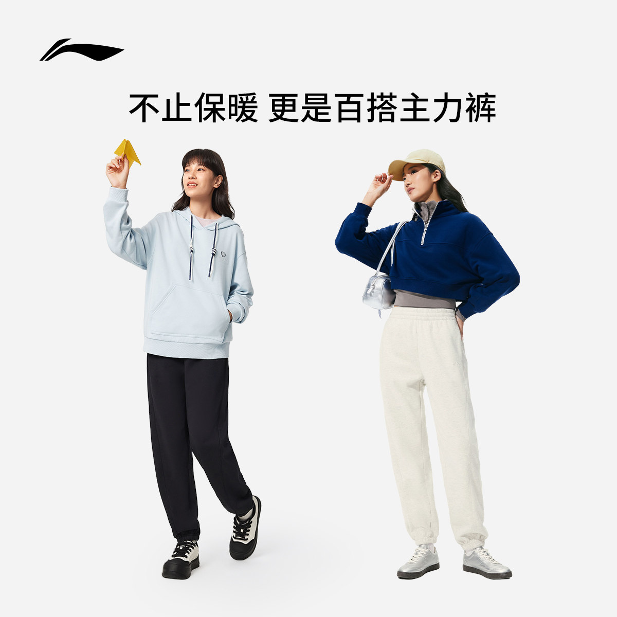 李宁卫裤女秋冬加绒束脚女士宽松休闲裤子女针织百搭毛圈运动长裤