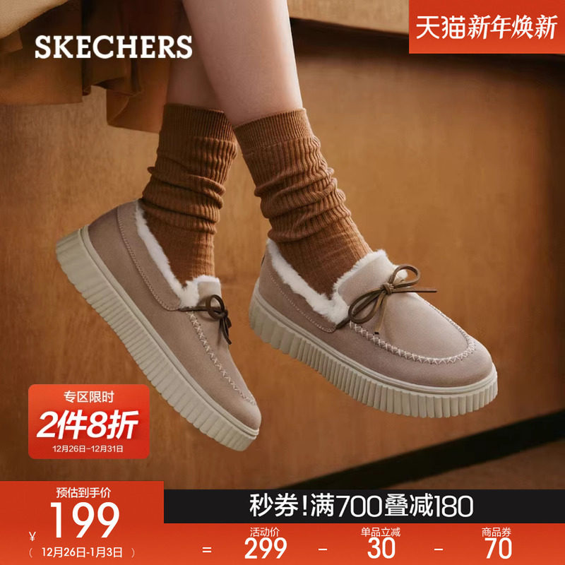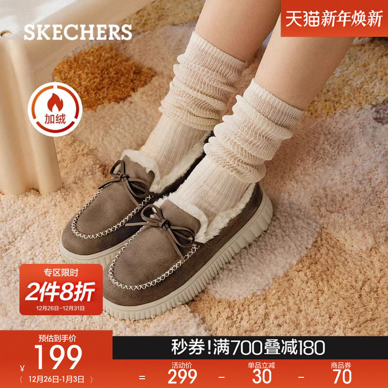 斯凯奇奶贝鞋|冬季新款加绒浅口舒适休闲单鞋棉鞋乐福女鞋豆豆鞋