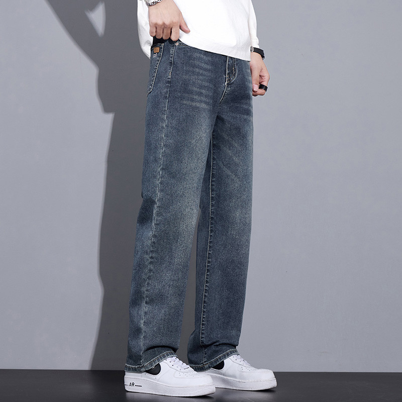 森柔牛仔森马牛仔裤男裤子新款中蓝潮宽松直筒裤子男复古百搭猫须