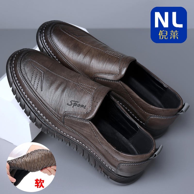2025新款春季男鞋真皮休闲鞋牛筋软底防滑中年爸爸皮鞋男款一脚蹬