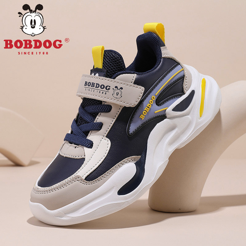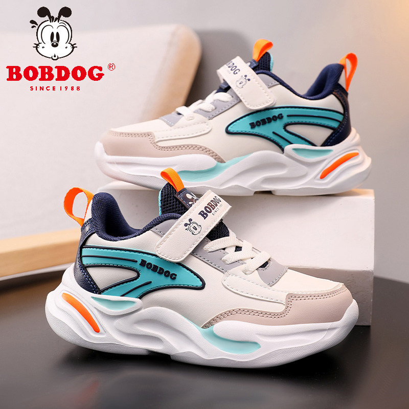 巴布豆男童跑步鞋2025冬季新款皮面防水女孩运动鞋软底防滑中大童