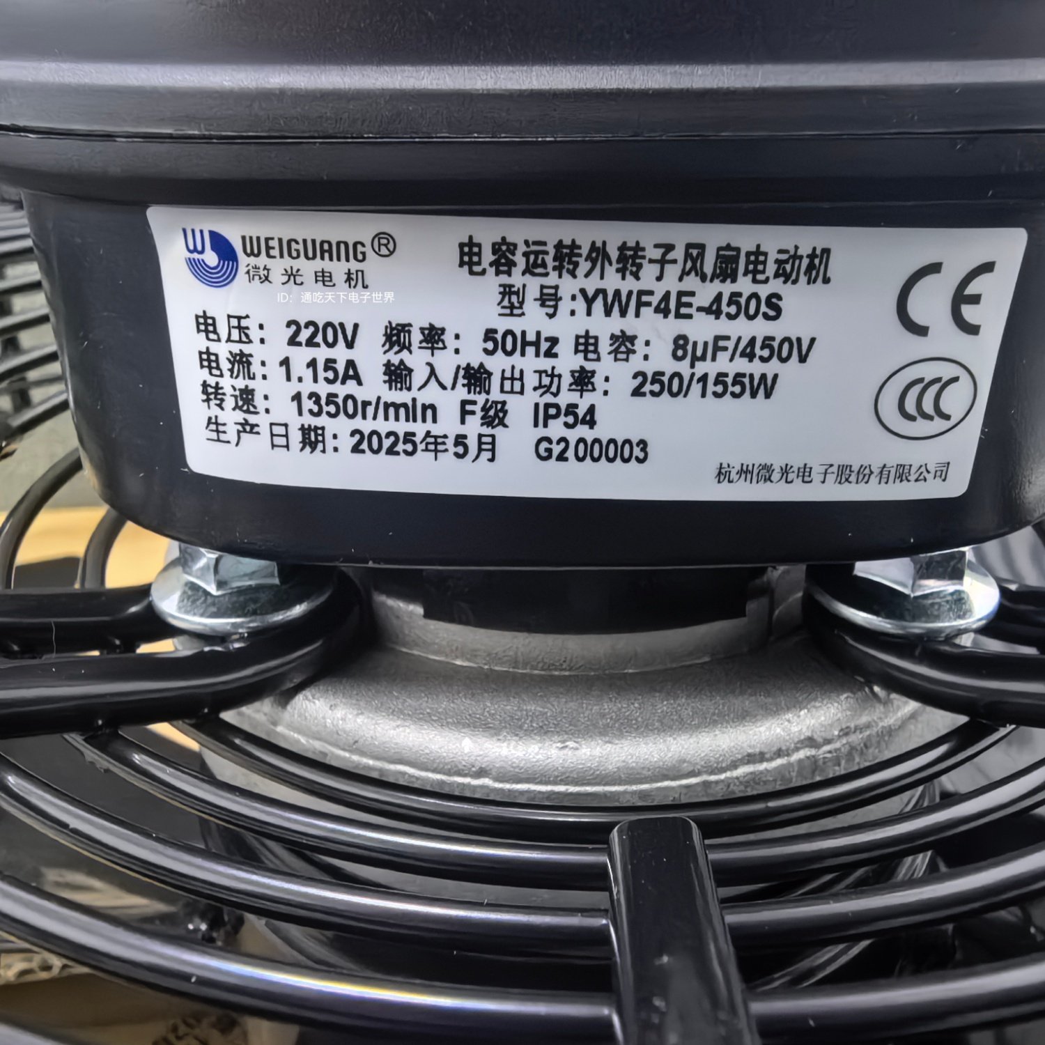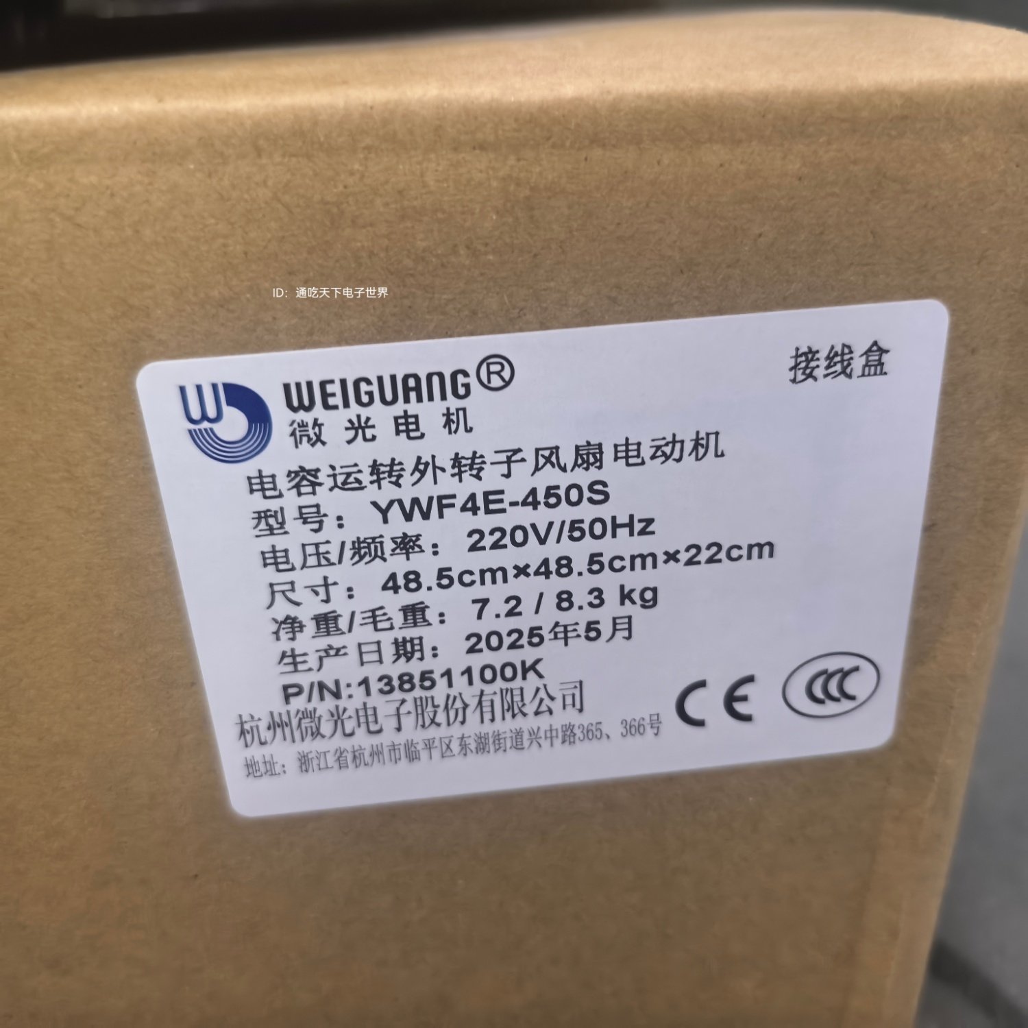 杭州微光外转子YWF4E-450S散热冷凝风扇电机带防水盒雪库冷风机