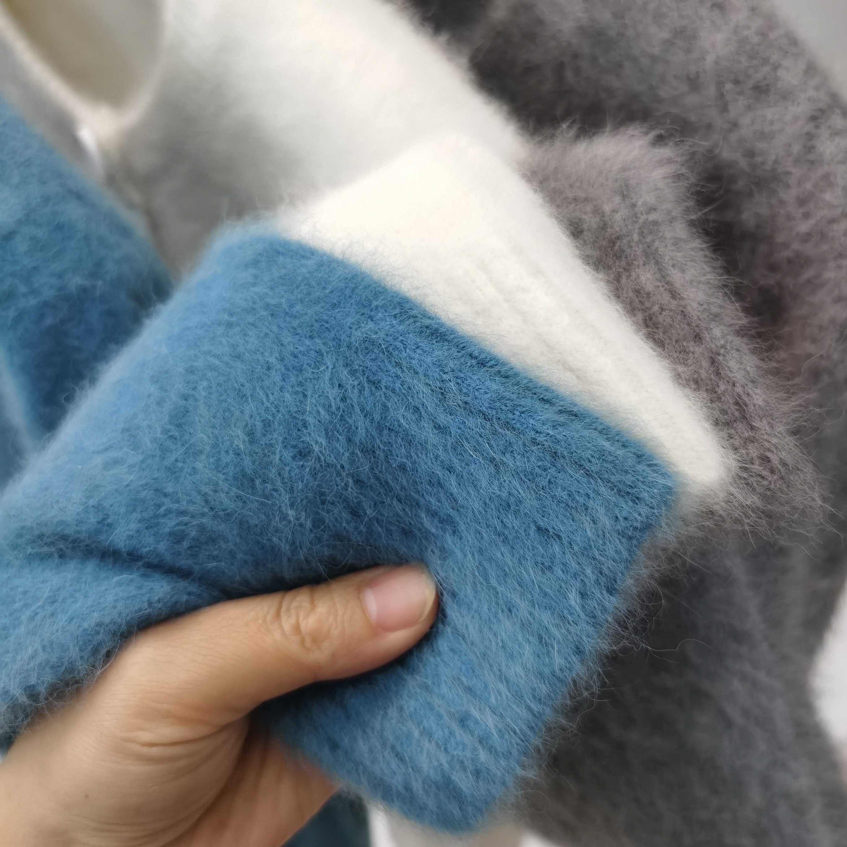 100%拉绒山羊绒+绵羊毛无缝一体亲肤柔软针织拉绒圆V领宽松打底衫
