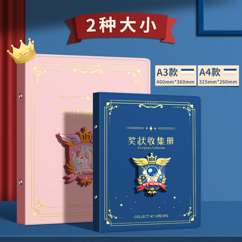 a4皮面奖状收集册女孩男孩荣誉证书a3儿童绘画册收纳神器高颜值文件夹可挂墙展示作品a5收纳册放奖状的相册本