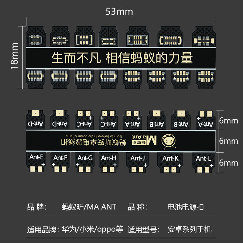 蚂蚁昕适用于华为荣耀小米红米三星OPPOVIVO安卓手机维修主板免电池开机电源扣底座硅胶电源线