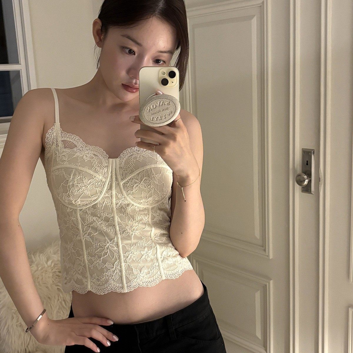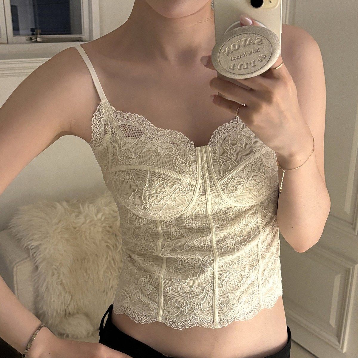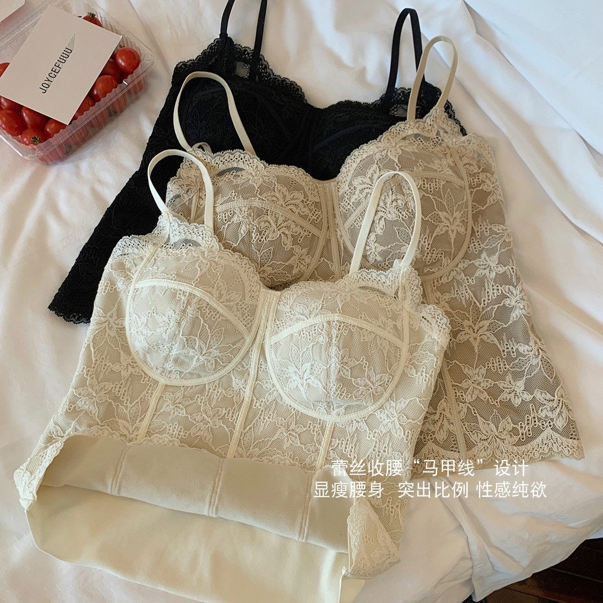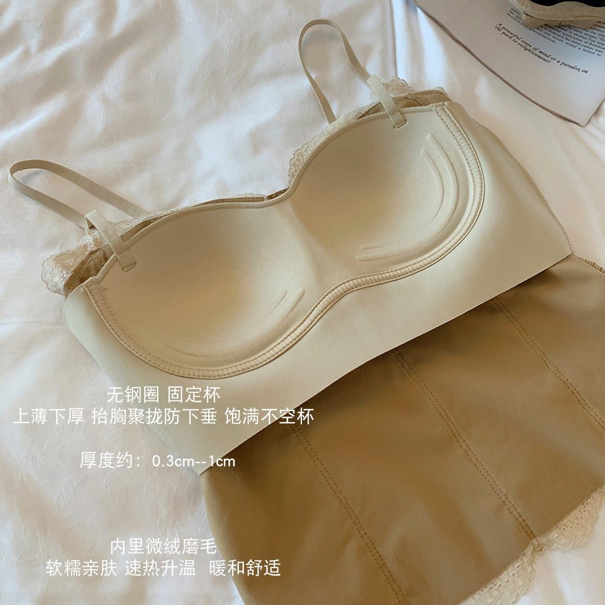 法式性感蕾丝美背吊带磨毛保暖背心带胸垫内搭打底上衣可外穿纯欲
