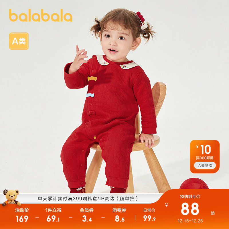 巴拉巴拉童装婴儿连体衣新生儿爬服2025年新款春秋装宝宝衣服夹棉