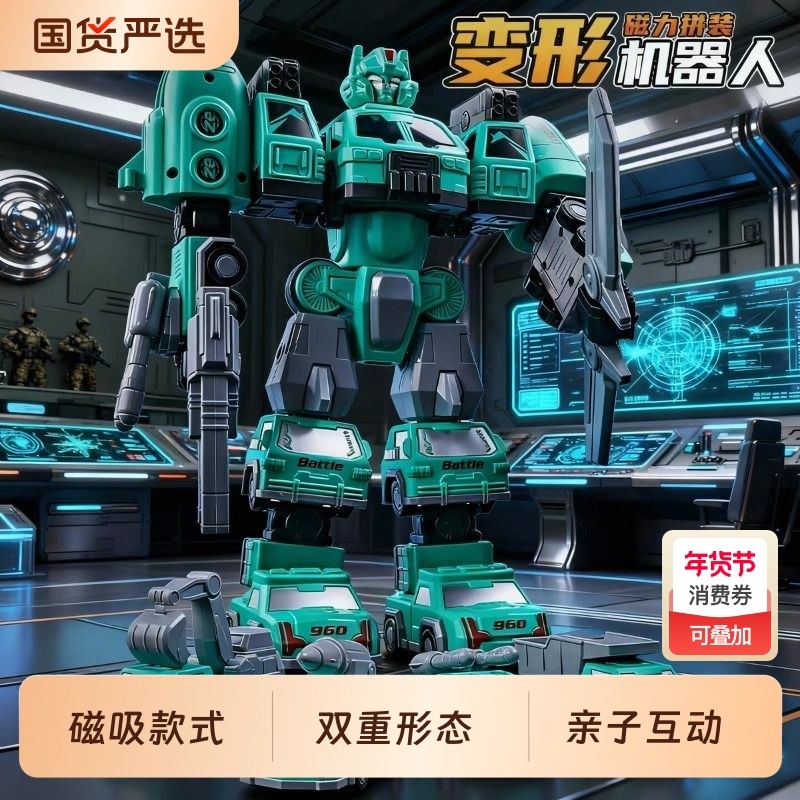 儿童玩具男孩磁力吸积木拼装变形工程汽车益智3到6岁宝宝生日礼物