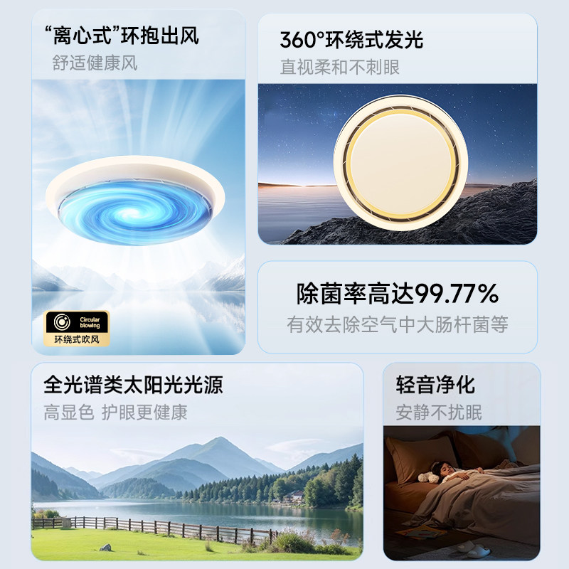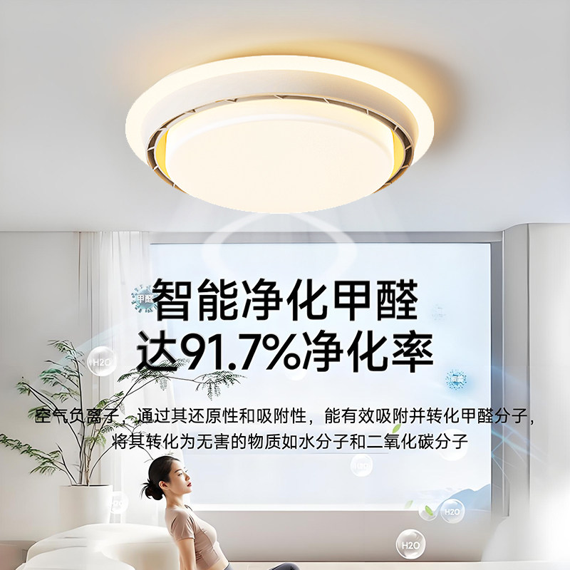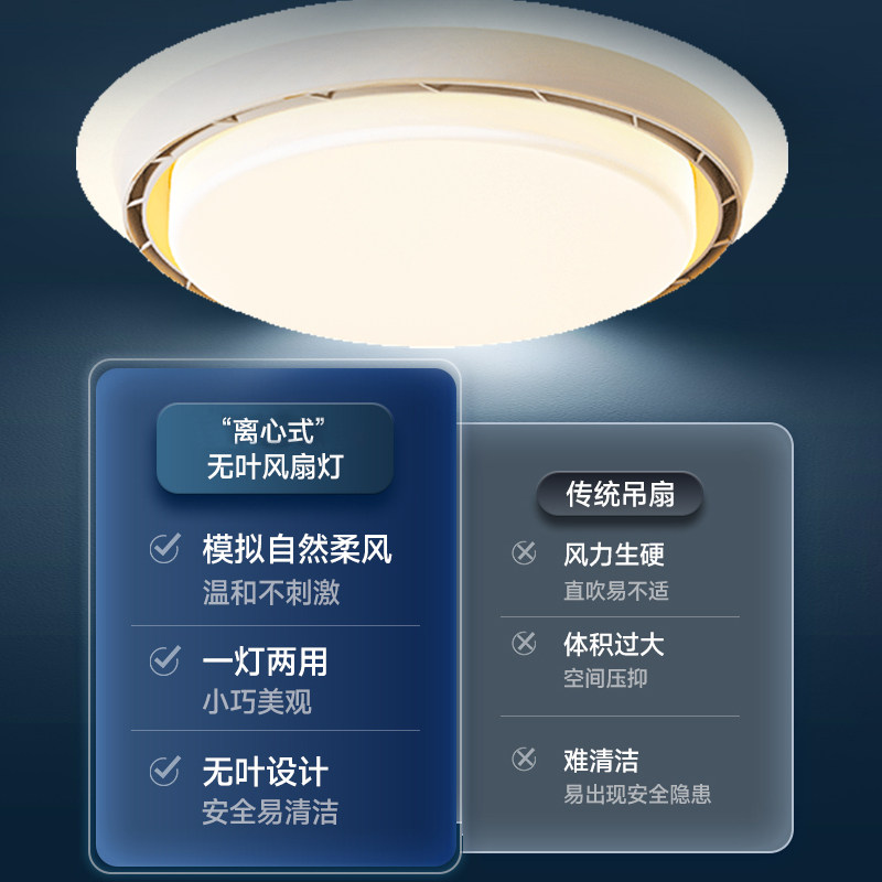 绿源照明护眼无叶风扇灯现代卧室隐形餐厅电扇一体吸顶灯极简水晶