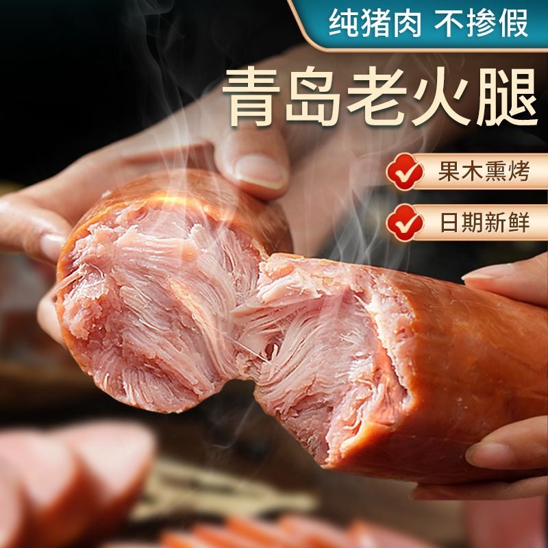 青岛特产老火腿果木烟熏烤猪肉香肠开袋即食手撕礼盒下酒鸡肉淀粉