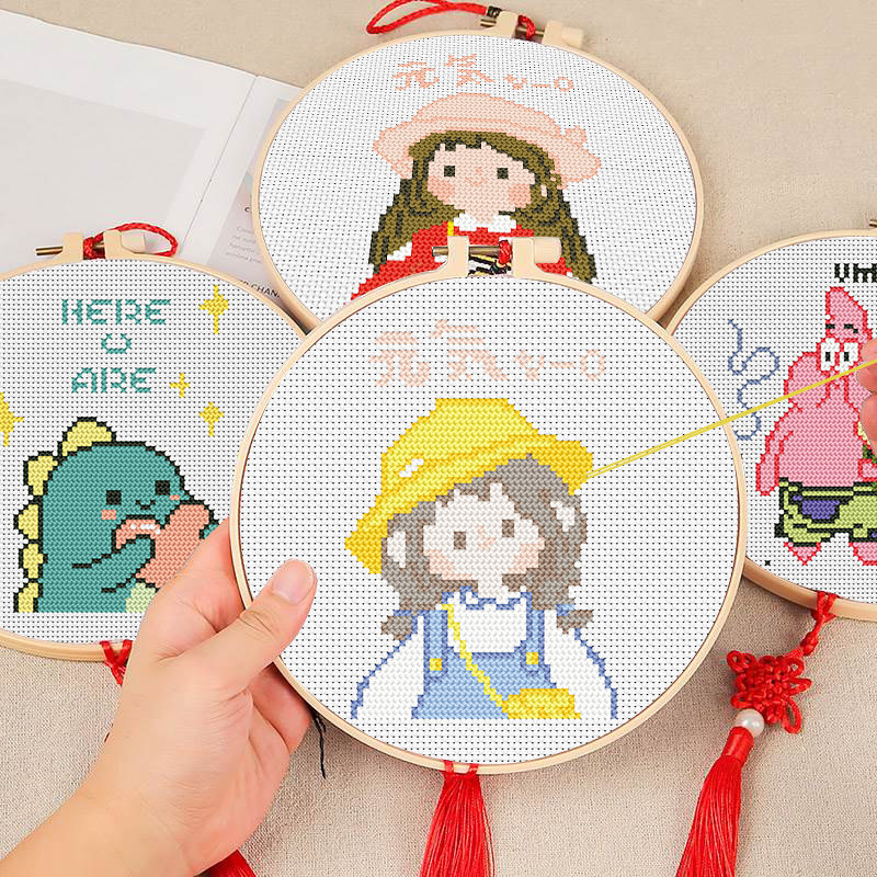 十字绣小挂件情侣卡通钥匙扣手工自己绣的礼物简单刺绣DIY材料包