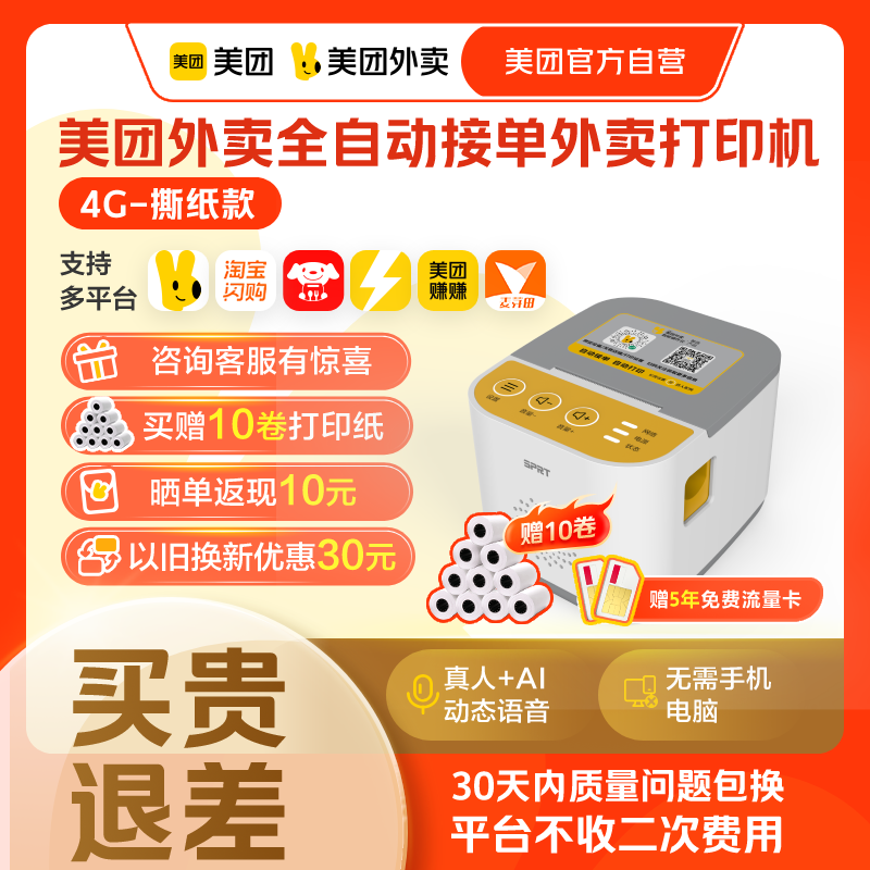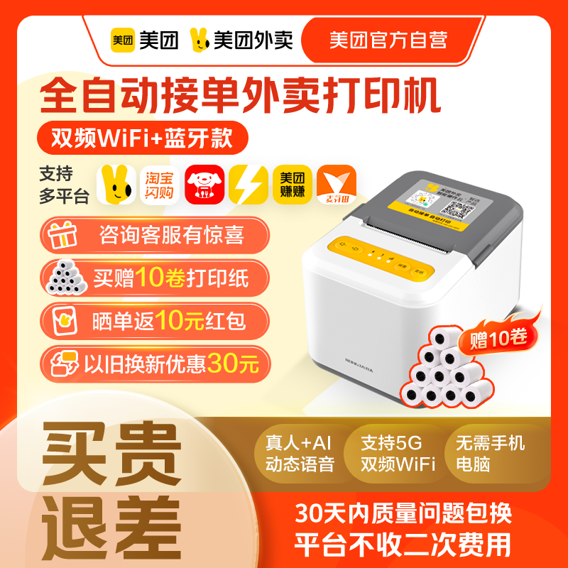 【美团官方自营】美团外卖打印机自动接单美团打印机饿了么京东外卖打单机票据热敏打印机小票机外卖专用