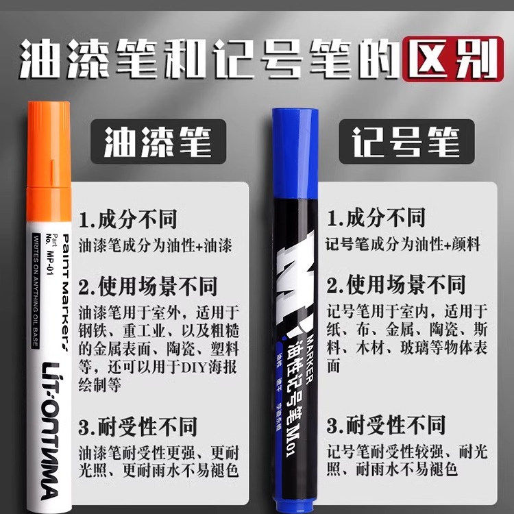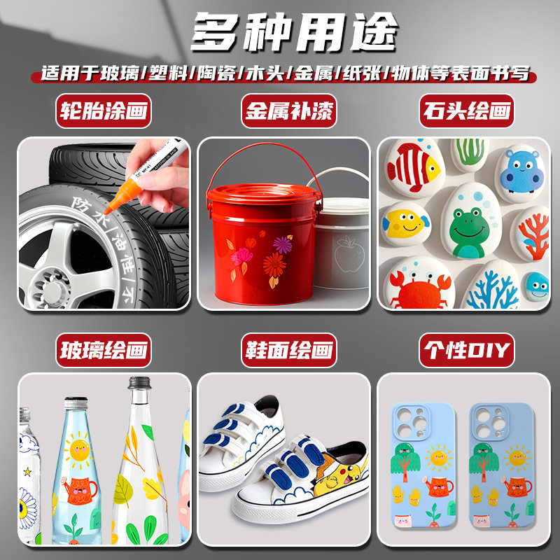 油漆笔白色记号笔防水防油不掉色工业儿童绘画彩色速干黑油性记号笔补漆笔轮胎笔银色涂画diy手工涂鸦笔多色