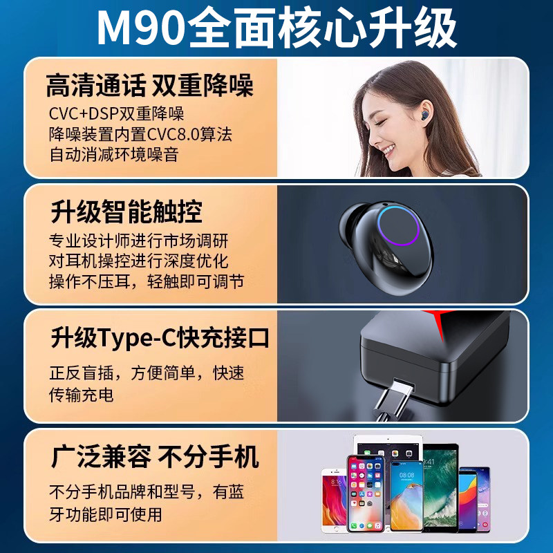无线蓝牙耳机2025新款电竞低延迟降噪运动跑步大电量游戏超长续航