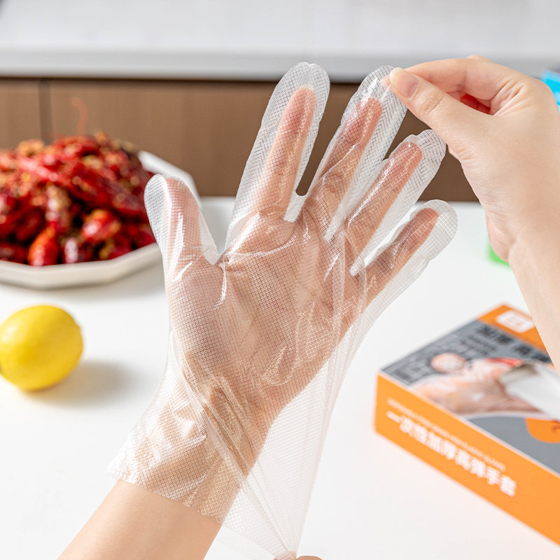 一次性手套食品级专用的防水防油吃小龙虾烧烤透明家庭盒装100只