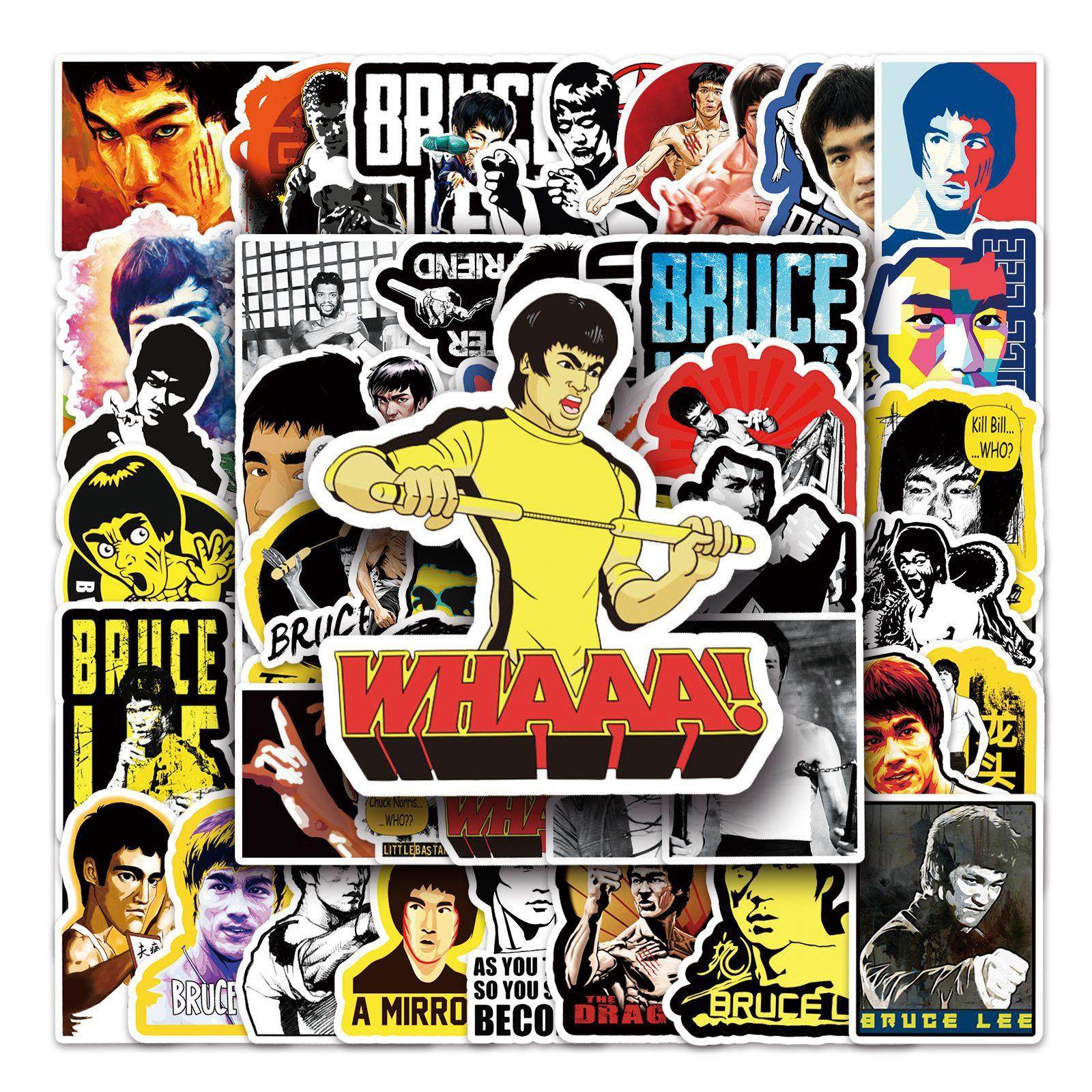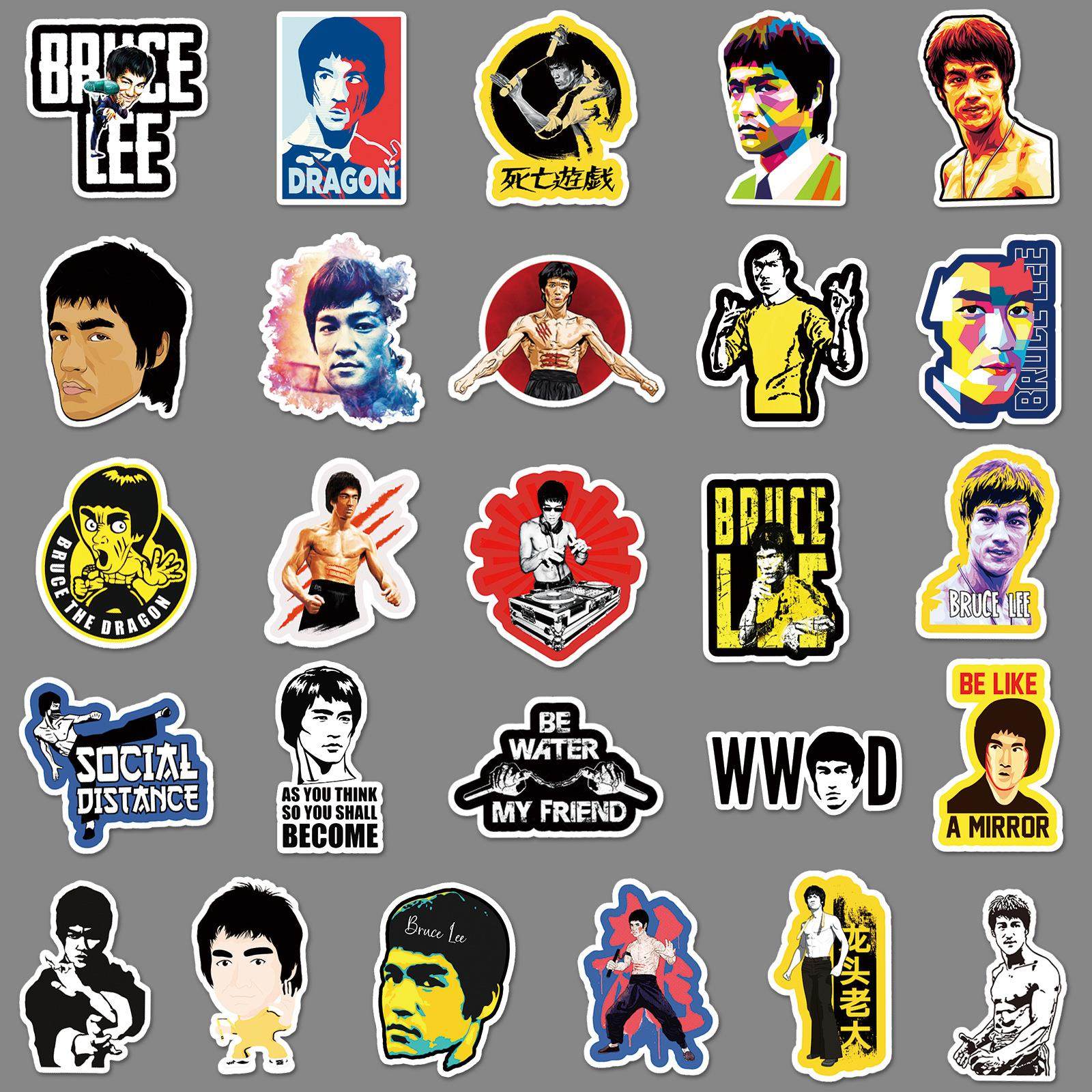 51张功夫影星李小龙跨境行李箱滑板车机车手机平板电脑不干胶贴纸