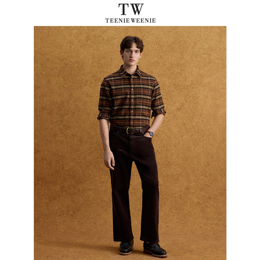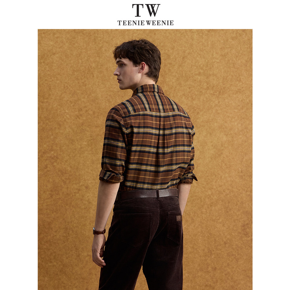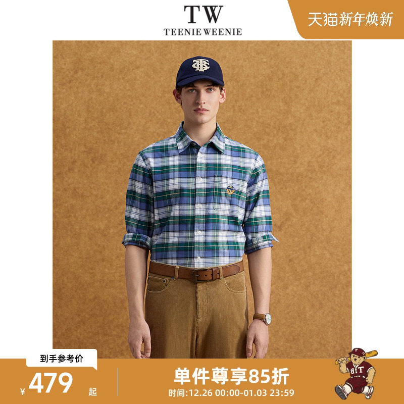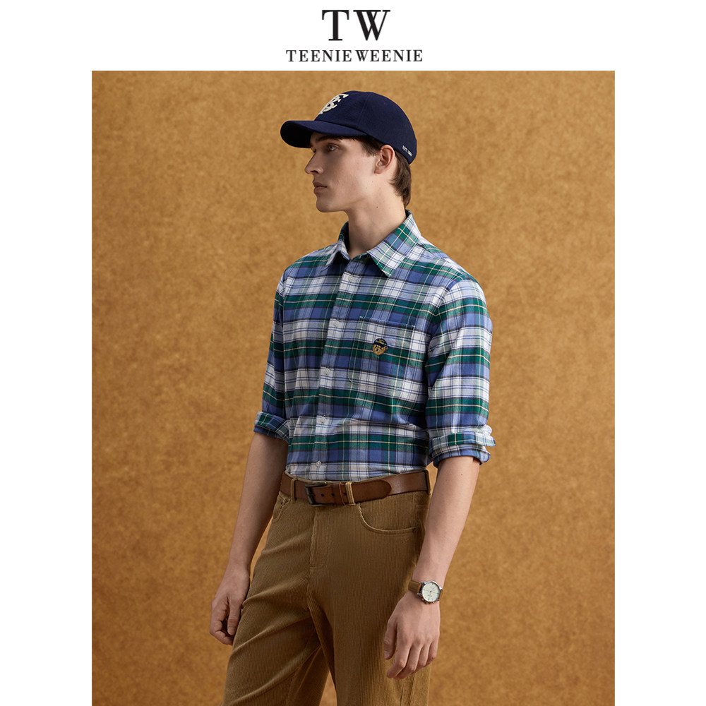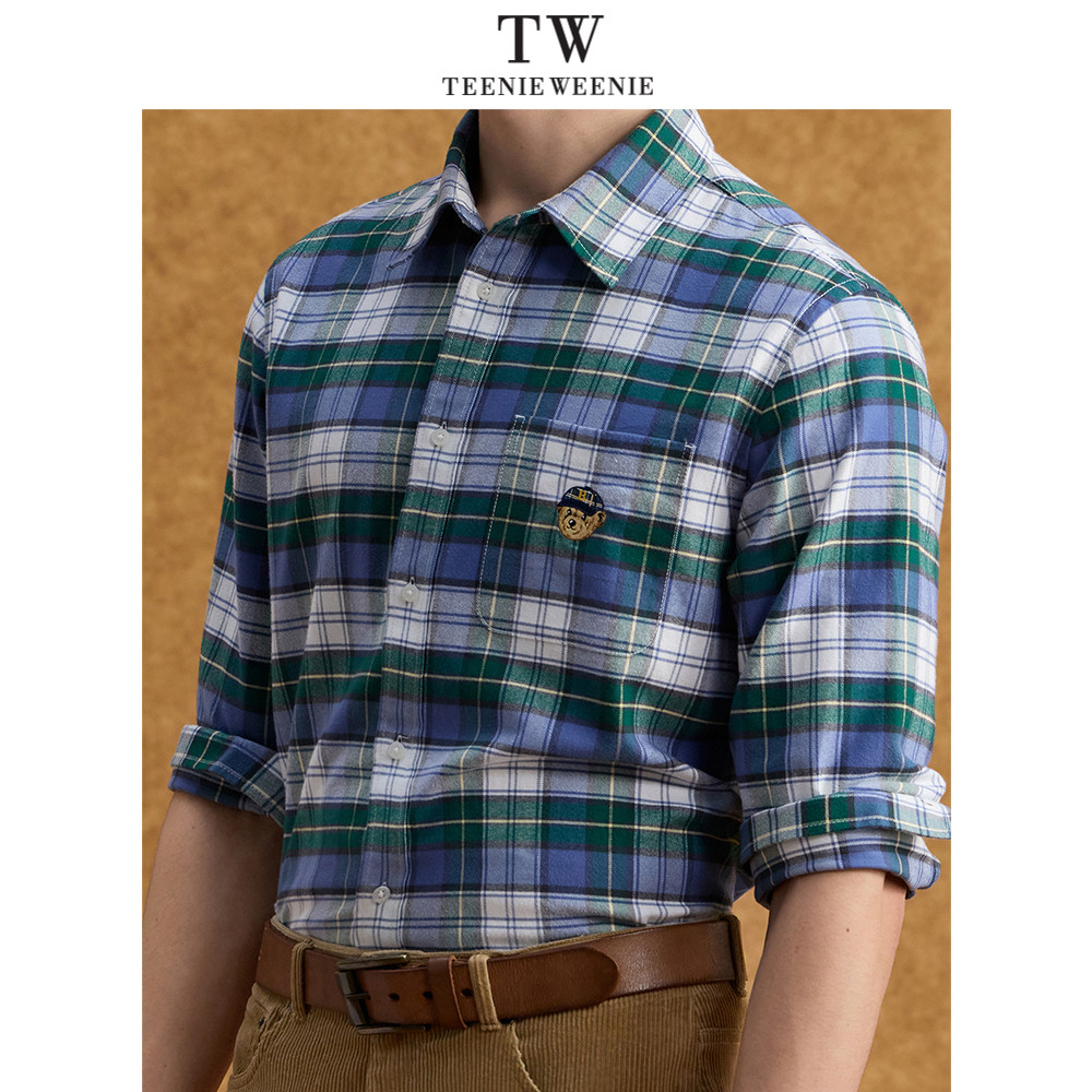 Teenie Weenie小熊男装宽松翻领简约通勤休闲格纹衬衫