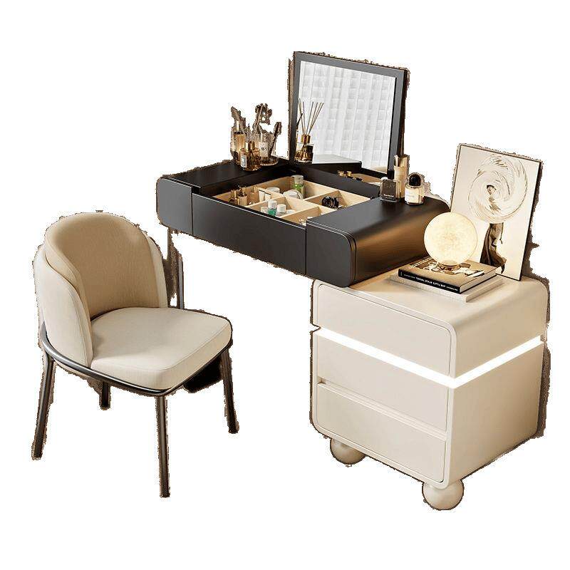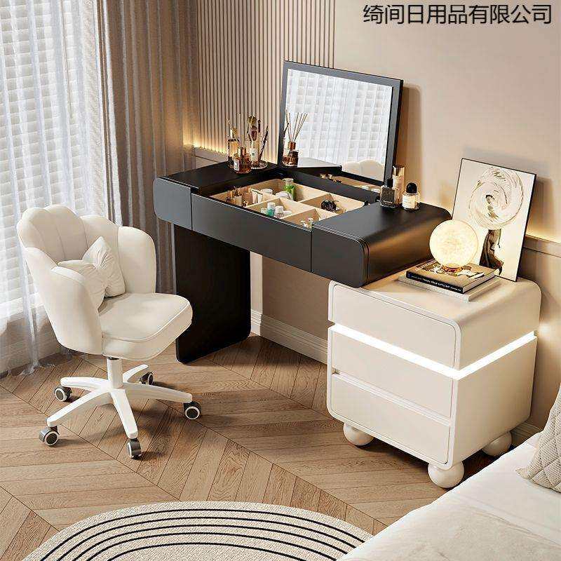 梳妆台斗柜一体奶油风加厚小户型新款翻盖化妆镜实木可伸缩化妆桌