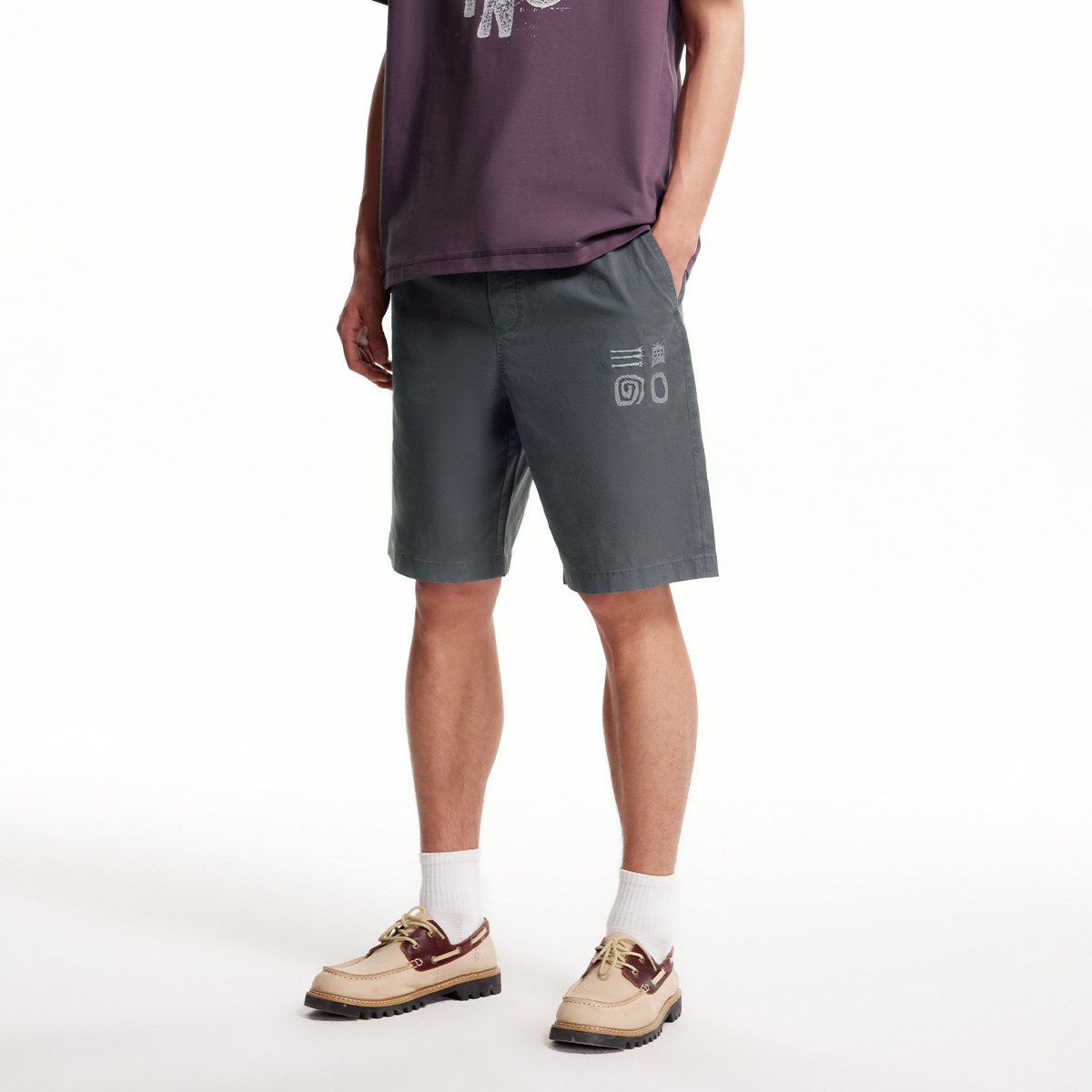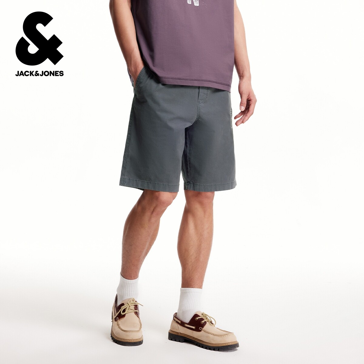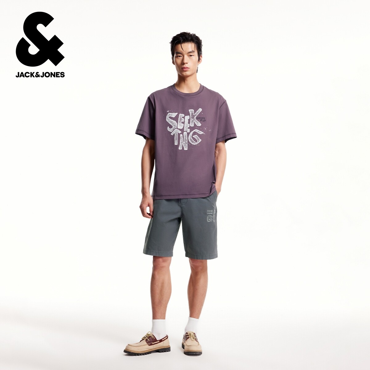 杰克琼斯奥特莱斯男装夏季新款短裤字母刺绣贴布宽松休闲裤子下装
