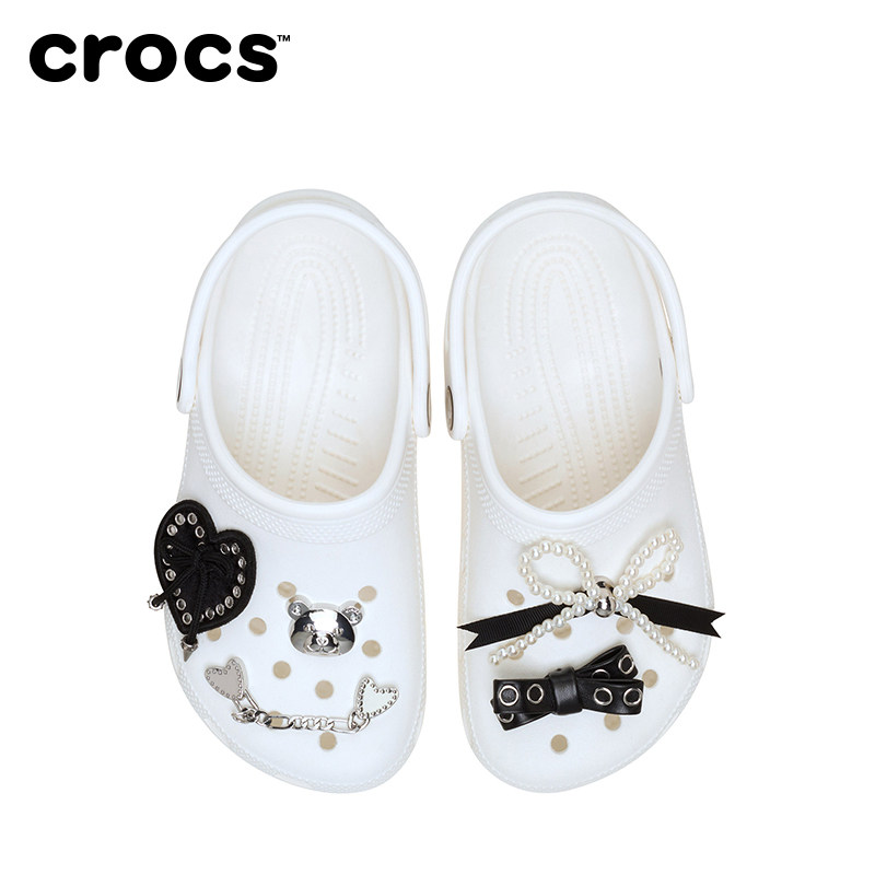 檀健次同款Crocs卡骆驰智必星配件洞洞鞋花 质感朋克黑银五件套