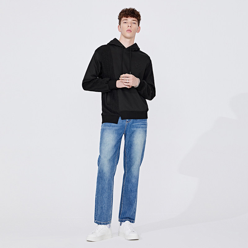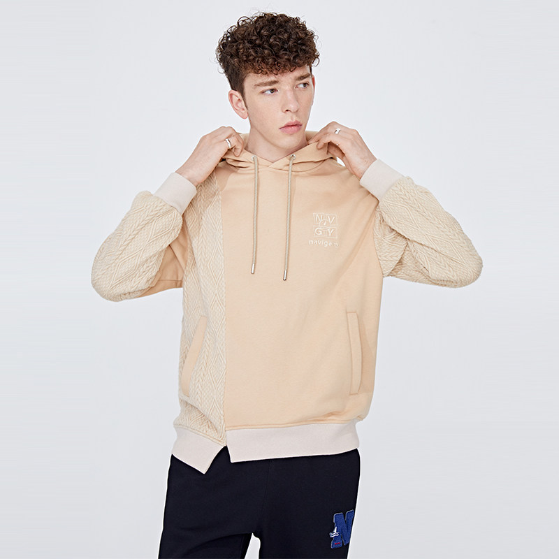 Navigare意大利小帆船连帽套头卫衣男春季新款潮牌刺绣不规则上衣