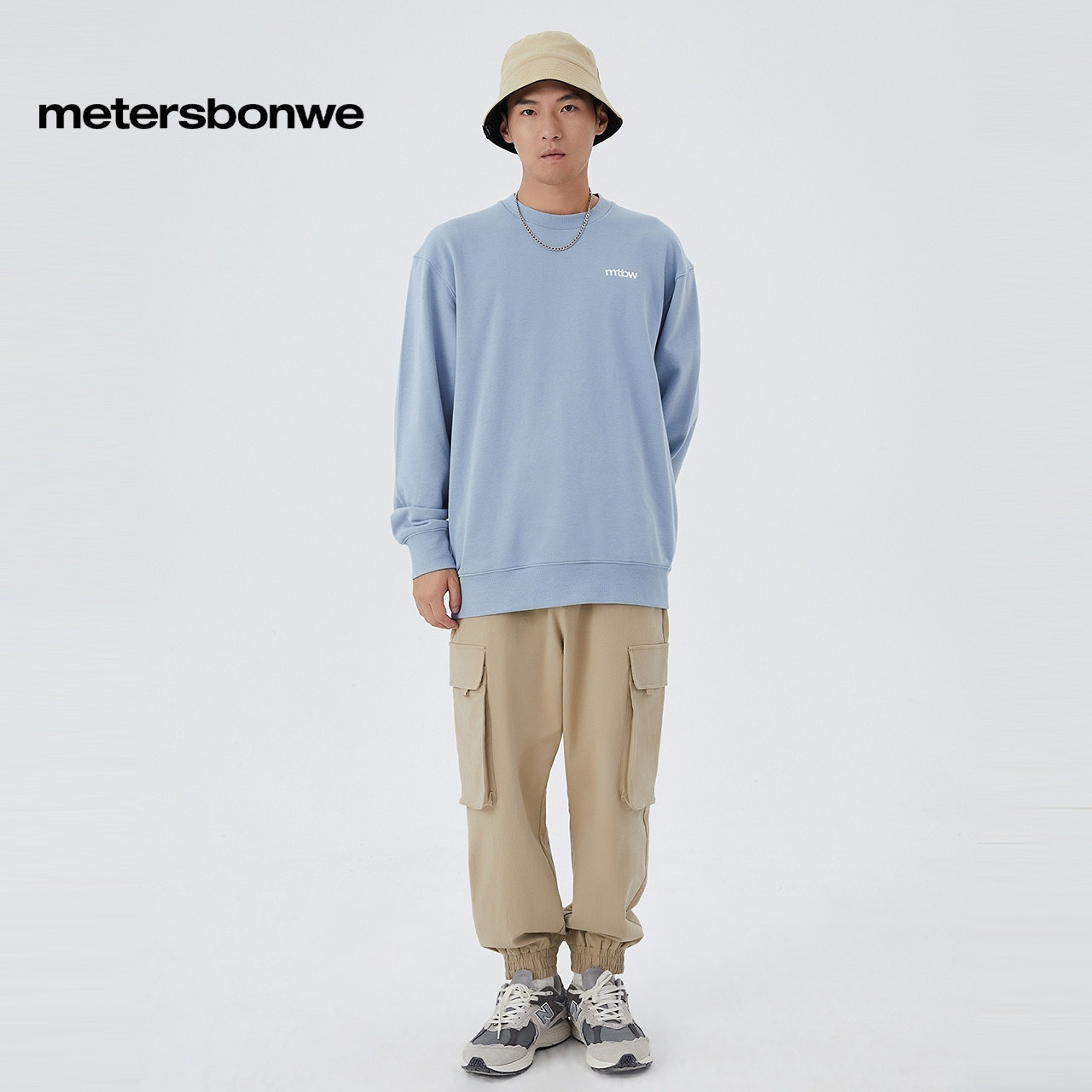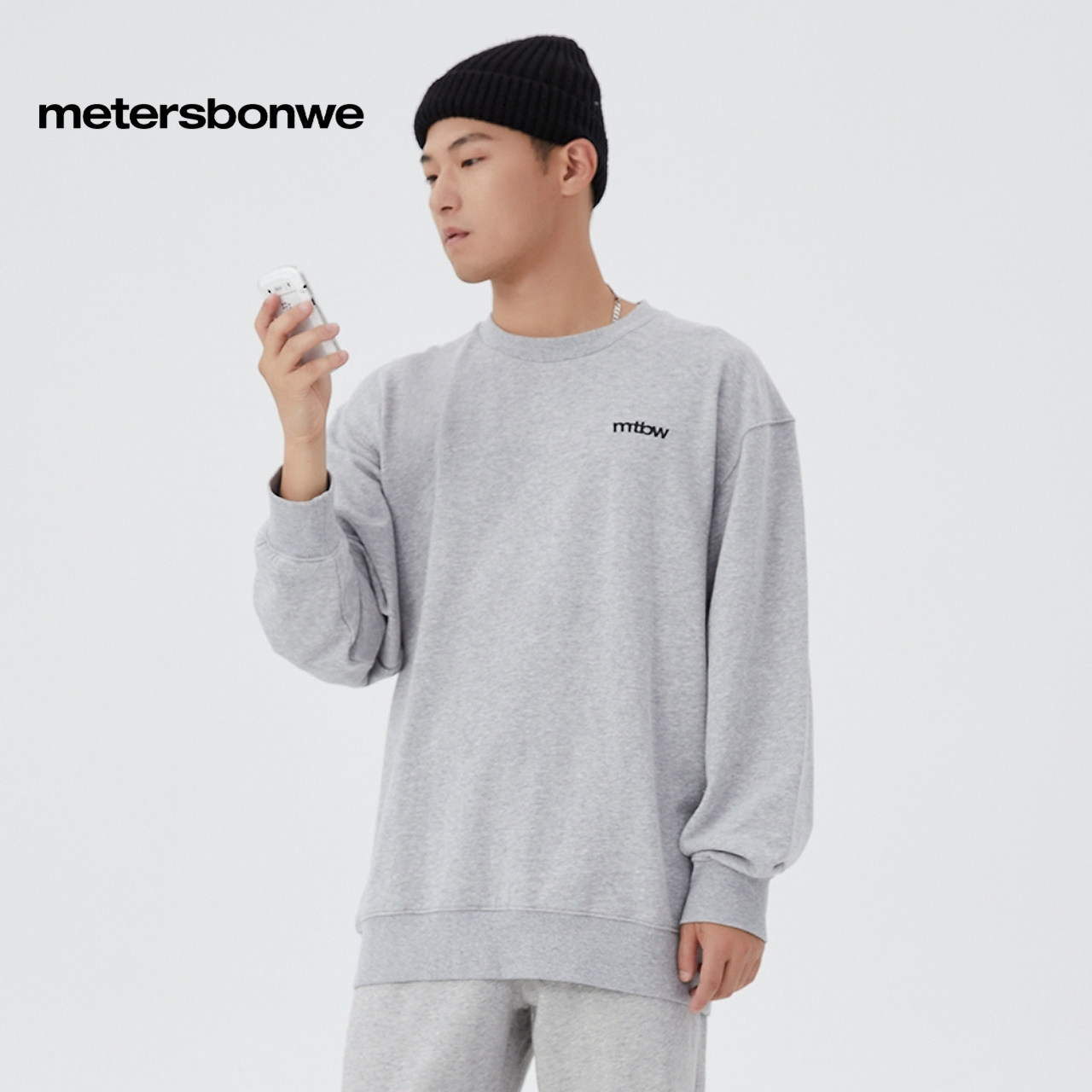 美特斯邦威卫衣男女同款多色基础绣花圆领休闲舒适百搭圆领上衣