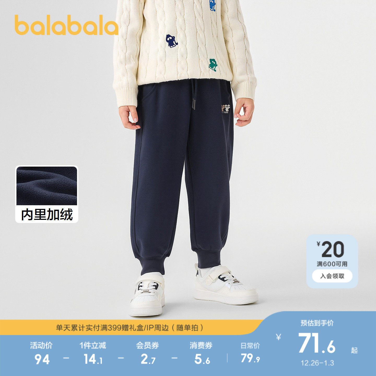 巴拉巴拉童装儿童长裤加绒保暖束脚裤男童休闲裤冬季裤子厚款百搭