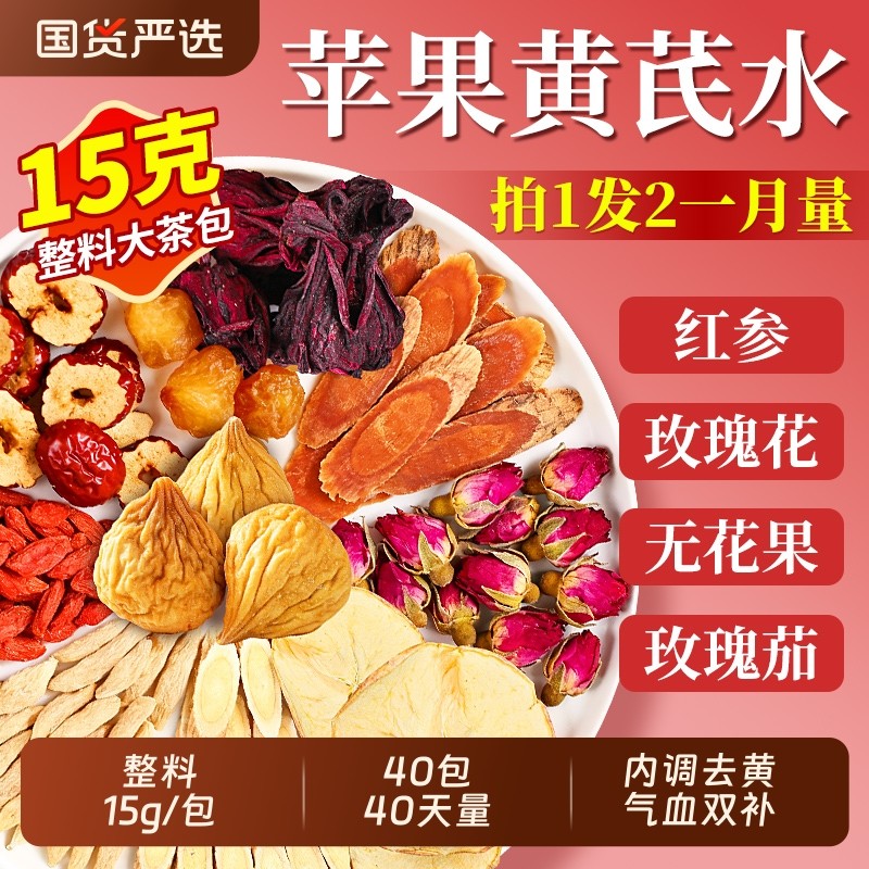 苹果黄芪水麦冬红枣枸杞茶素颜女人熬夜脸黄补气补血调理养生茶包