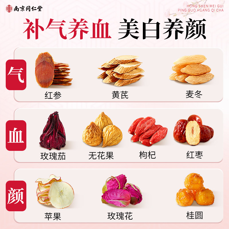 同仁堂红枣桂圆枸杞玫瑰花茶女生气血不足补气养血调理女人养生茶