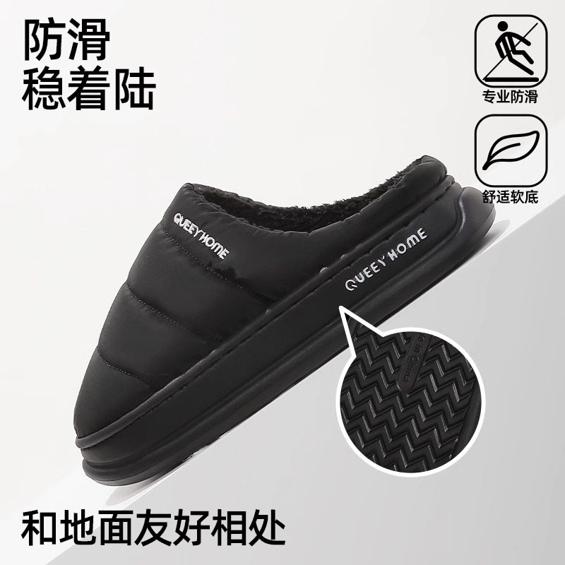 防水棉拖鞋男冬季室内家居防滑保暖加绒踩屎感厚底情侣女冬居家棉