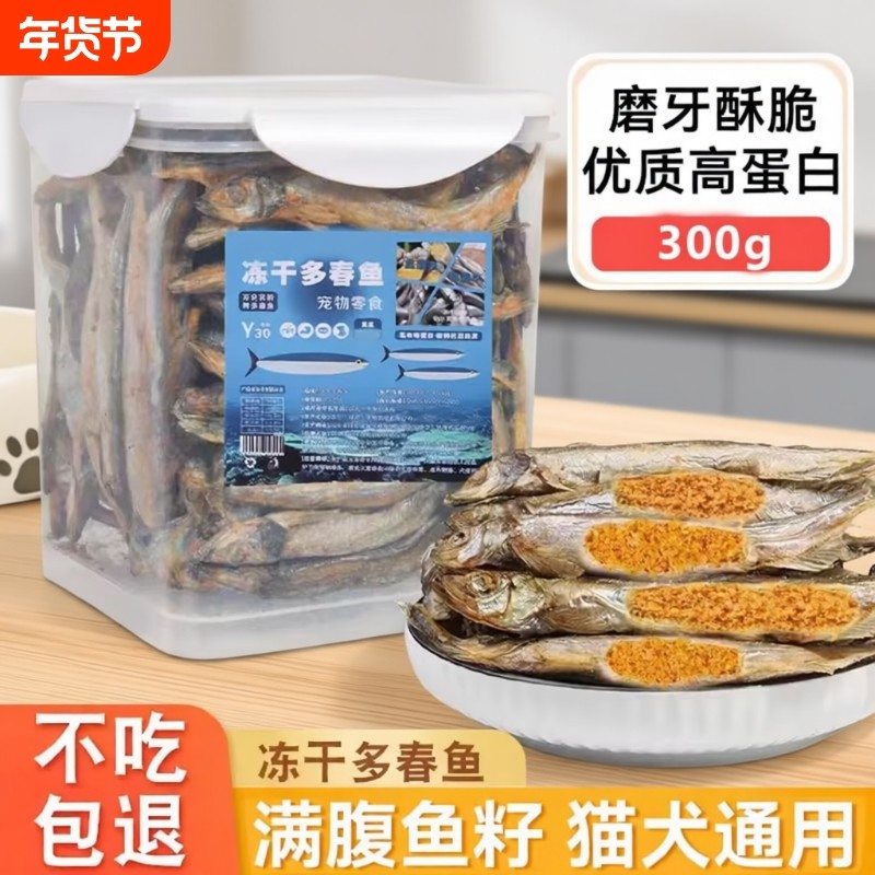 猫咪零食冻干多春鱼满籽小鱼干营养增肥发腮补钙磨牙成幼猫粮零食