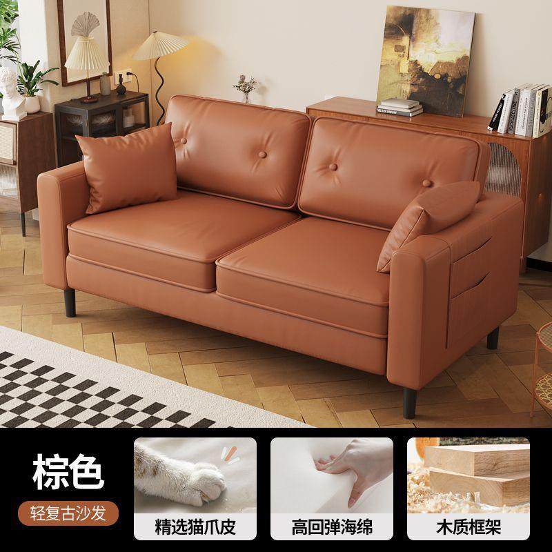 沙发小户型双人出租屋客厅小公寓服装店家用简约卧室三人皮艺沙发