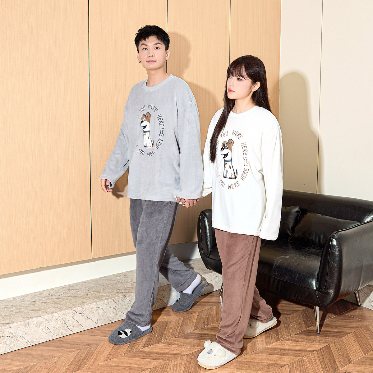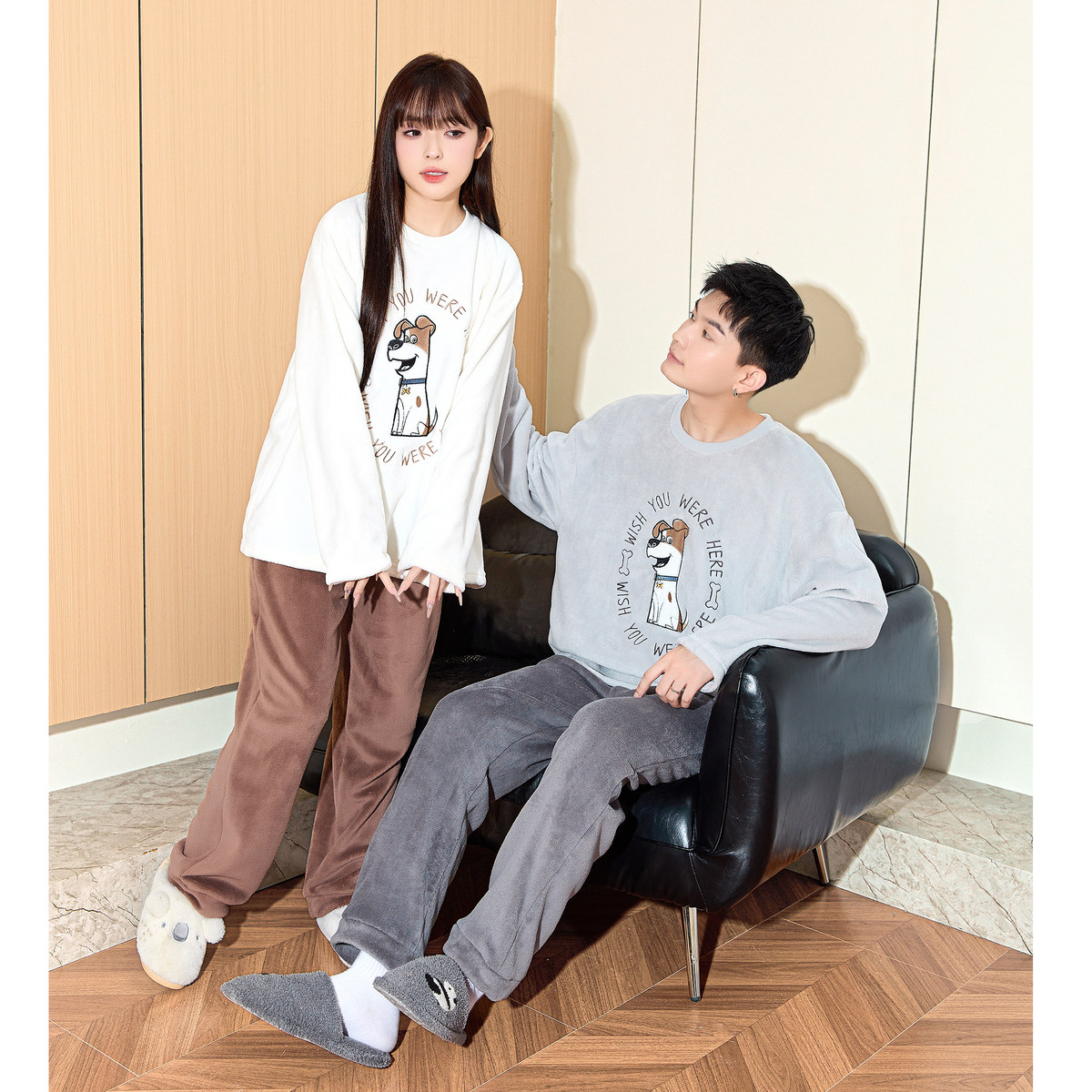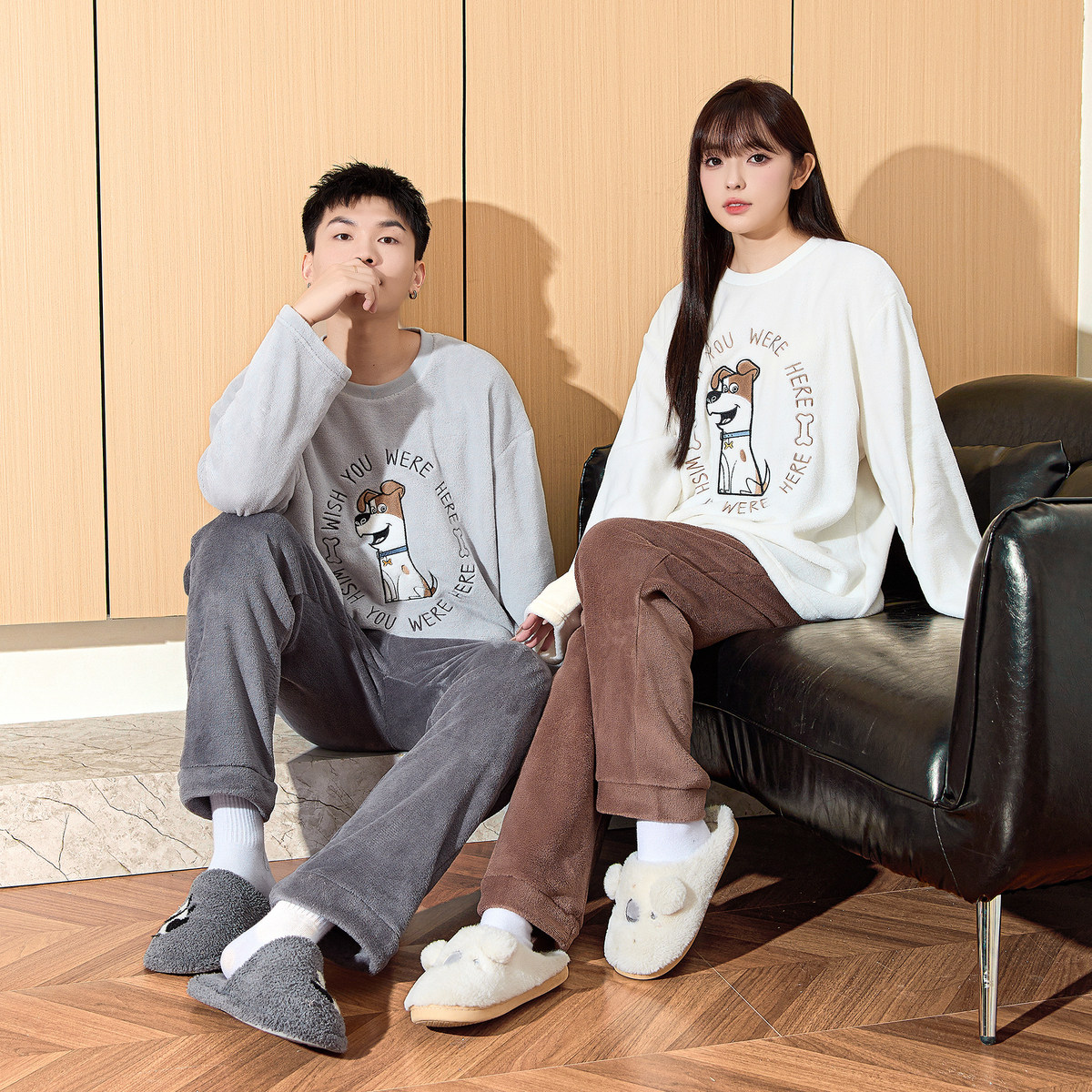 唐狮冬款情侣家居服珊瑚绒加绒加厚可外穿睡衣女套头卡通套装男TD