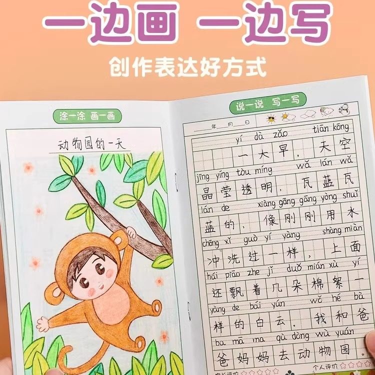 绘画日记本小学生一年级二年级幼儿园看图写话儿童画图写话本b5一天一画拼音田字格少儿女孩图画本子周记簿a5