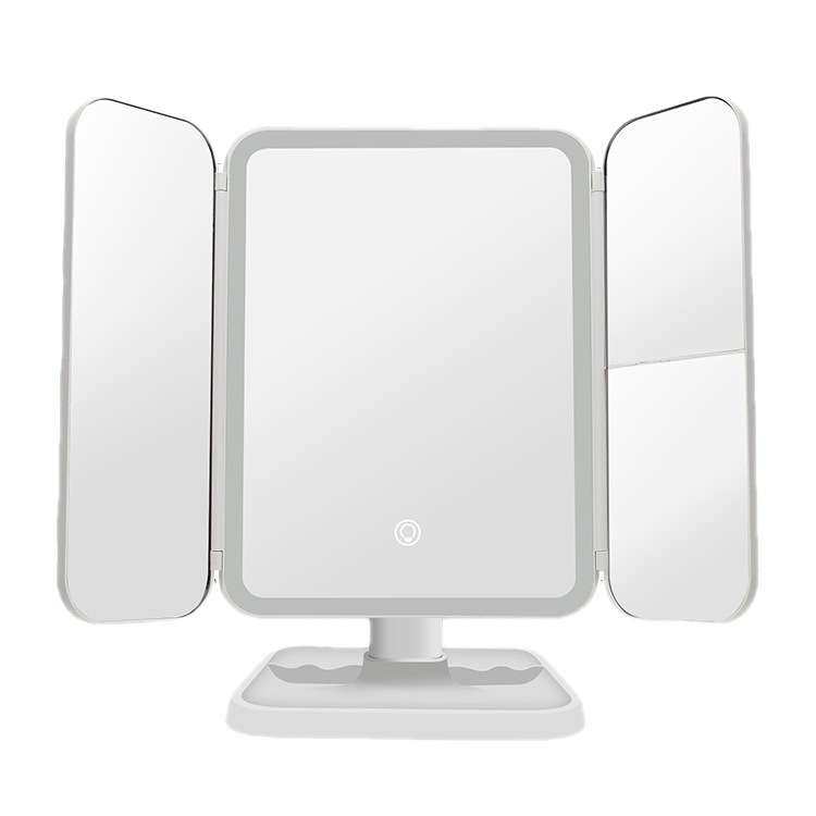 新款家用三开收纳led折叠化妆镜带灯时尚补光梳妆镜美妆镜子