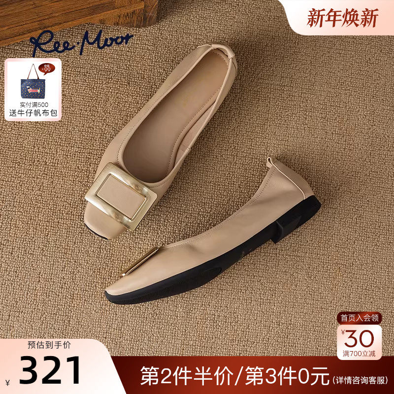 REEMOOR睿慕2025秋季新款小羊皮温柔晚晚风舒适软底平底单鞋女