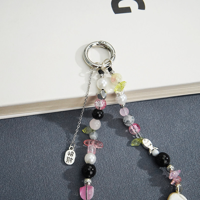 招财小鱼手机指环挂链串珠水晶手腕挂绳斜挎新款适用苹果挂饰
