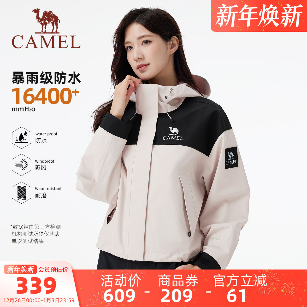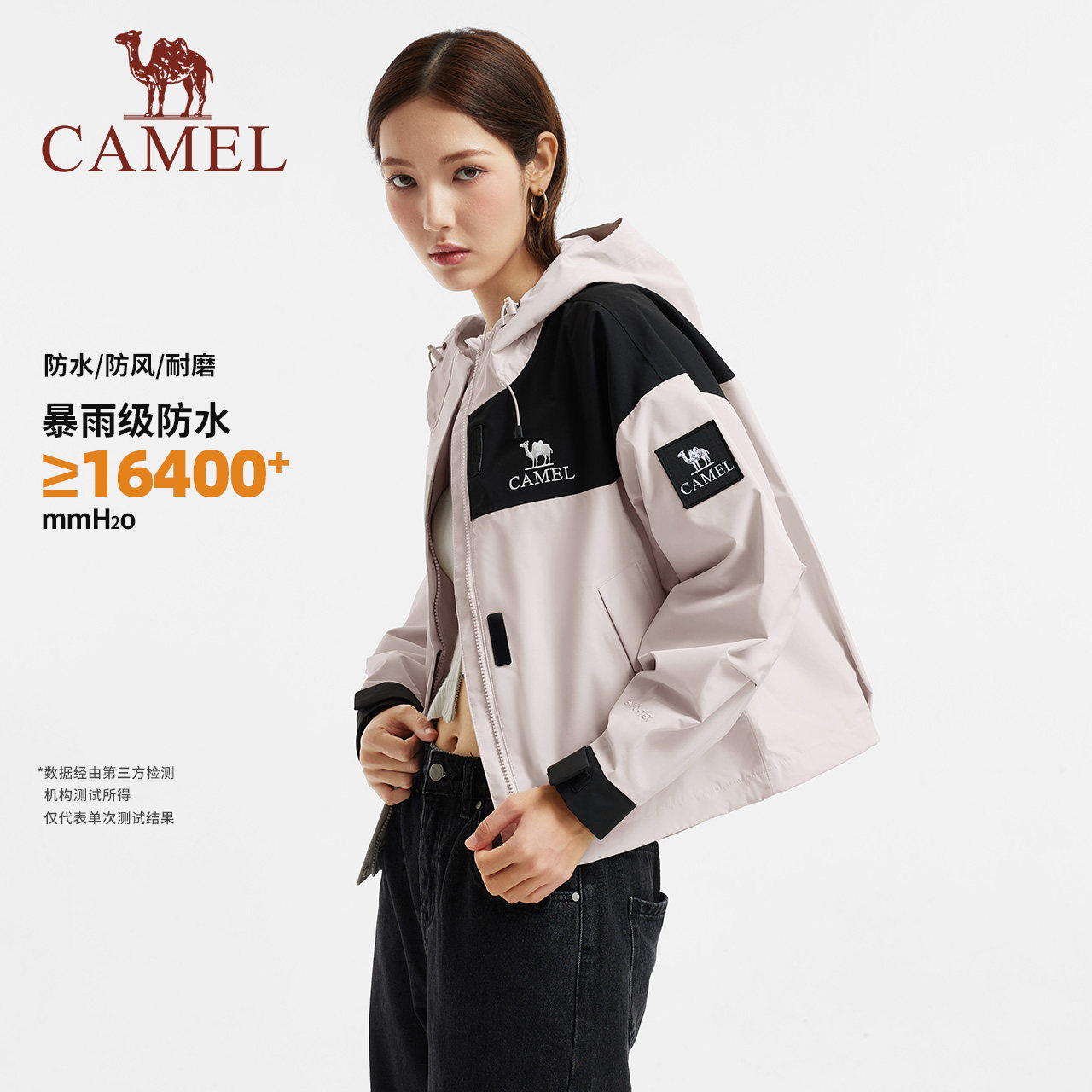 骆驼女装单层冲锋衣2025新款秋冬户外防风防水连帽立领男女款外套