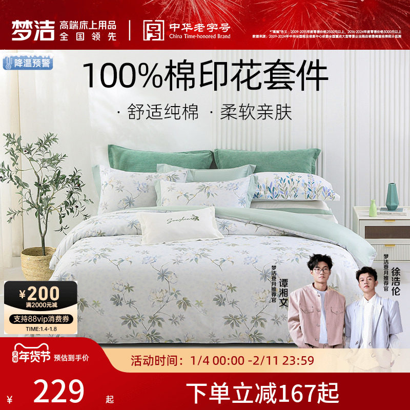 梦洁家纺床上四件套全棉纯棉被套床单印花套件家用春秋季床上用品