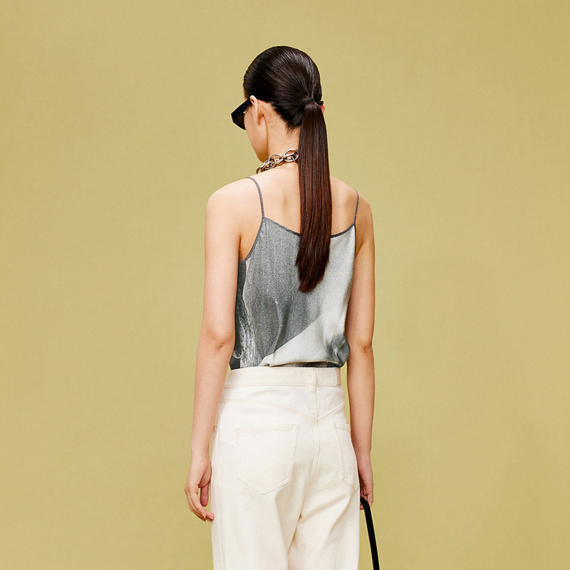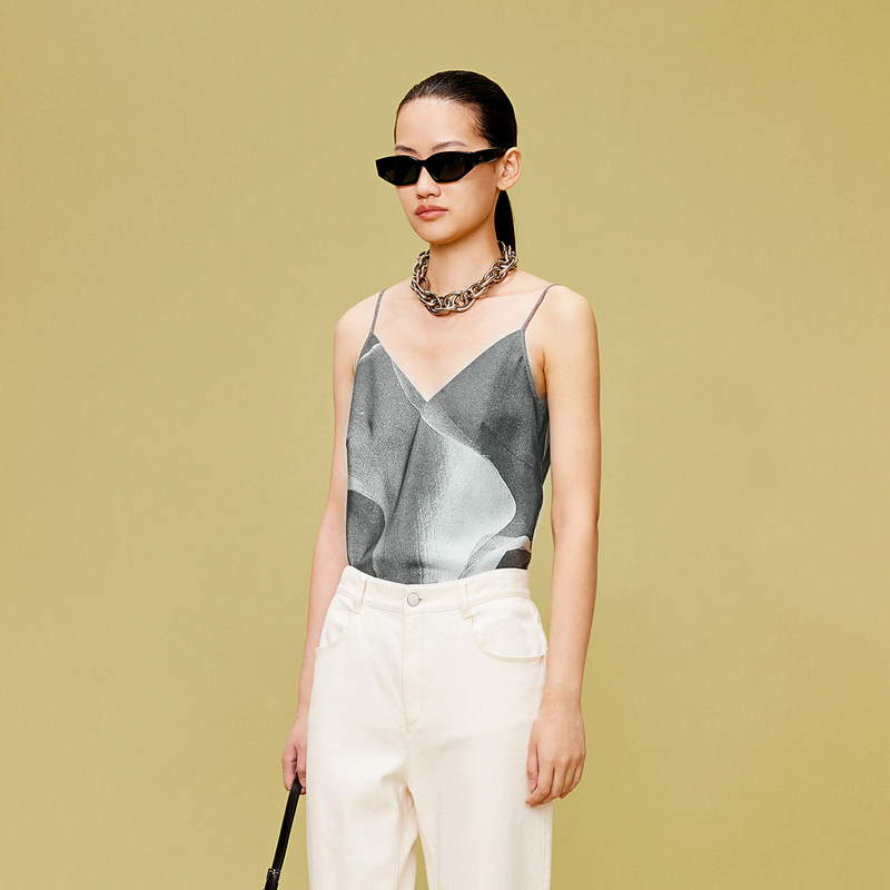 【精工系列】LESS春桑蚕真丝艺术感植物拓印吊带背心2O3013240