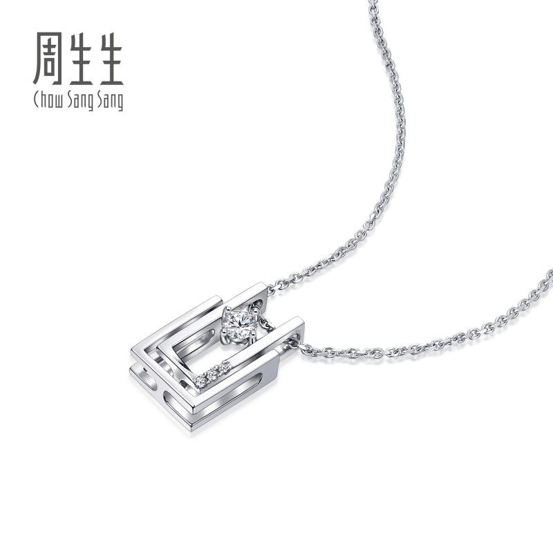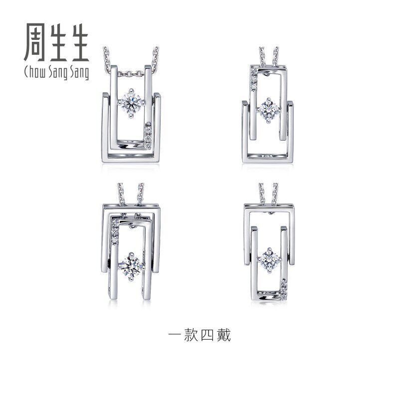周生生Daily Luxe钻石吊坠Pt900铂金挂坠一款多戴92238P