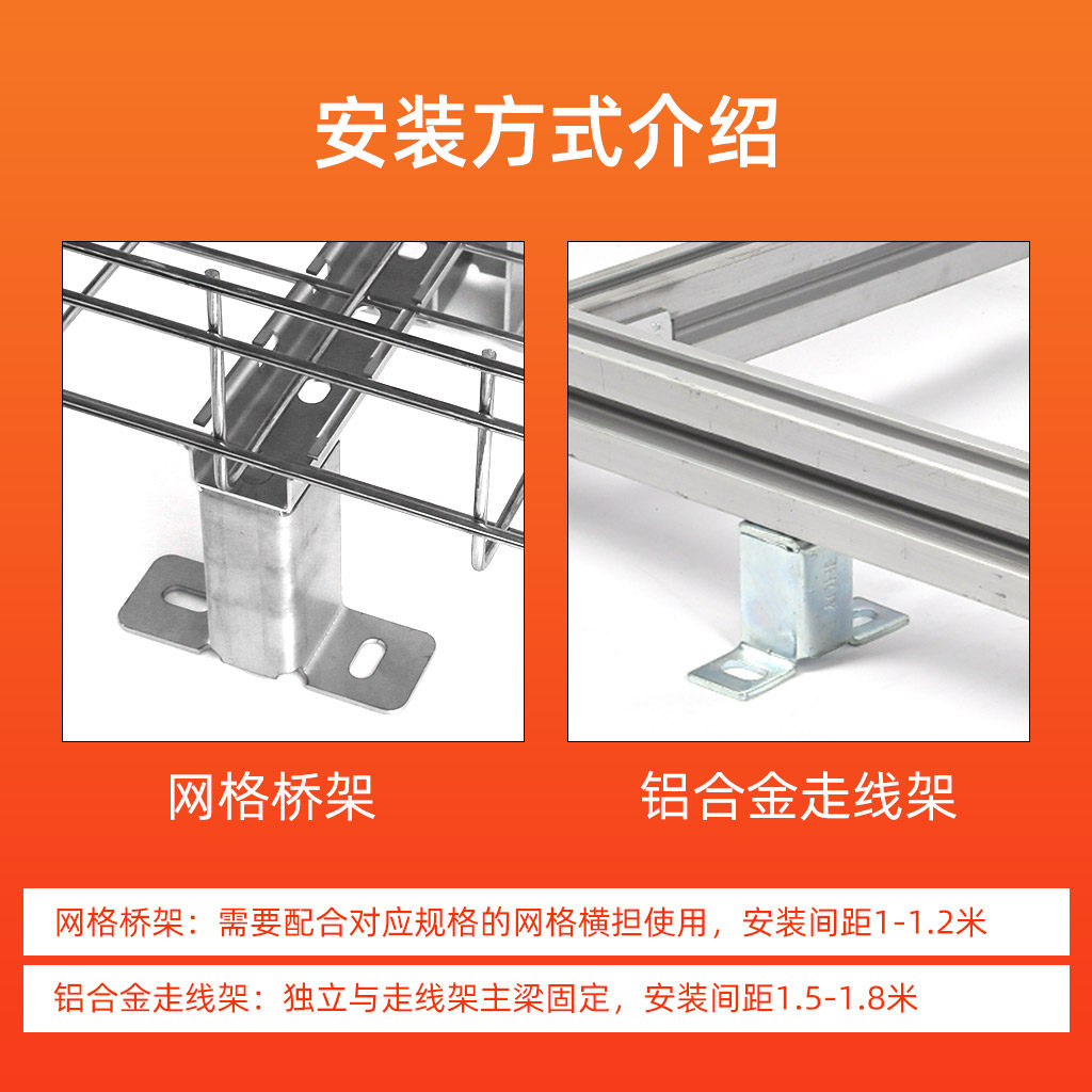网格桥架支撑座开放式网格线槽机柜支架开放式走线架配件镀锌不锈钢方形支撑座地面安装支架机柜上固定